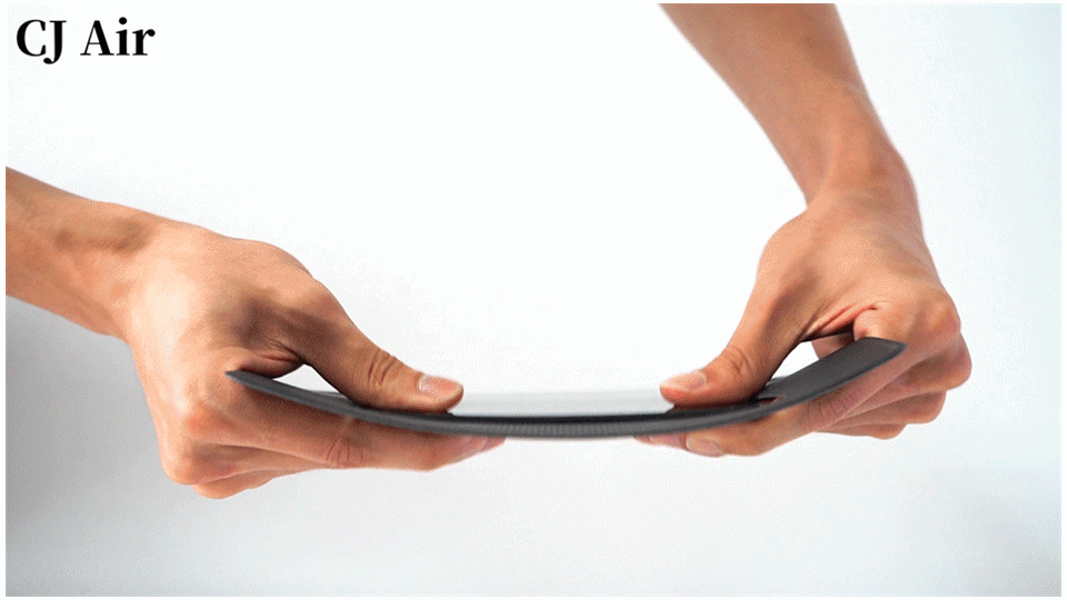 極薄かつ超軽量設計でありながら、CJ Airは最大10kgの高い対荷重を誇ります。PUとファイバーグラスの組み合わせにより、たび重なる開閉や荷重に負けない耐久性を持ち合わせています。