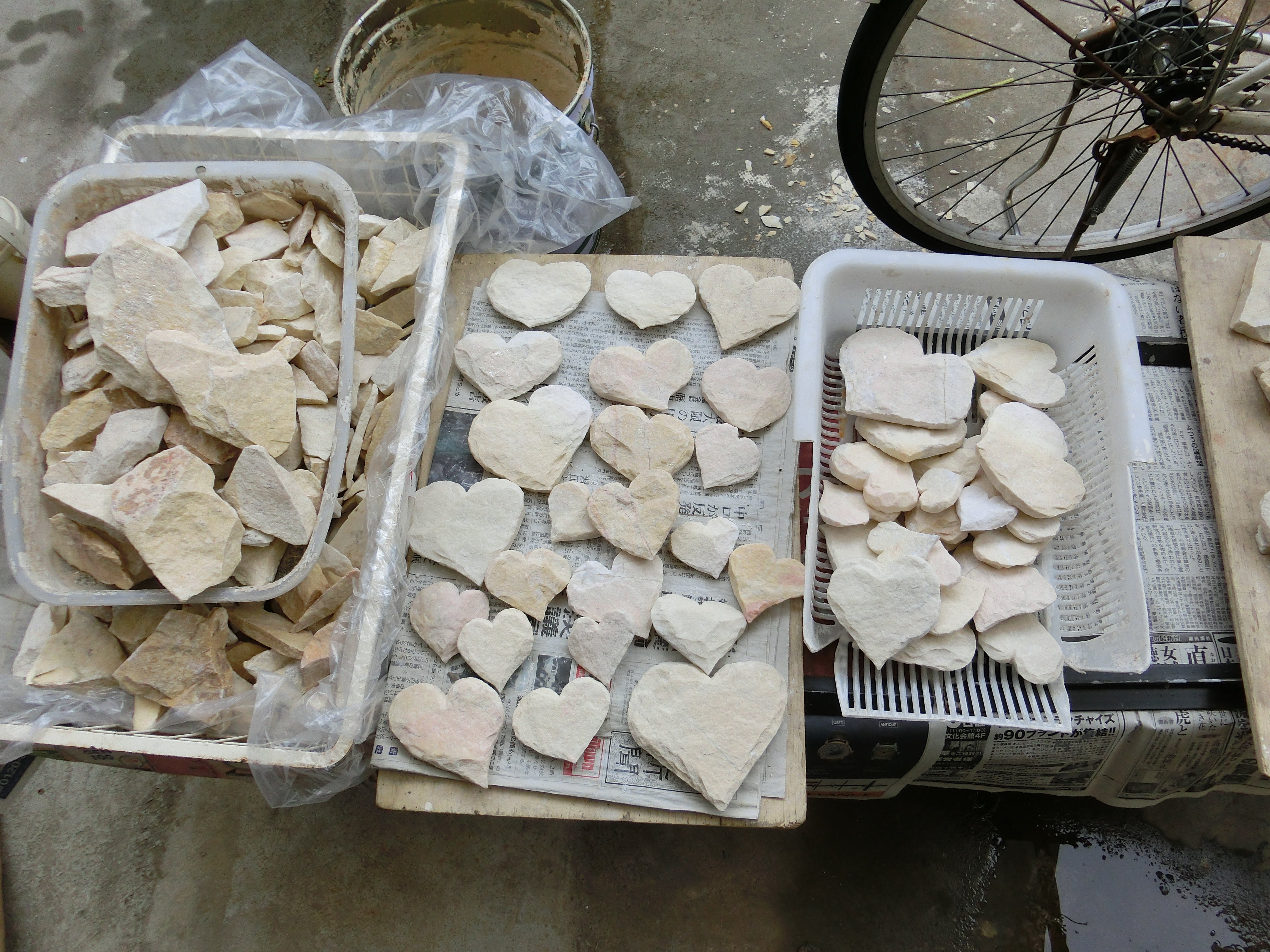 2019/11/04 00:00ご無沙汰しております。台風の襲来があり、そして豪雨が続き・・・・何から、ご報告してよいやら分からぬほど、時が過ぎてしまいました。報告が遅れまして大変、申し訳ありません。皆様からご支援いただきました金額は無事、9月30日に入金がありました。おかげさまで様々な資材を購入することが出来ました。改めて、感謝申し上げます。まことにありがとうございました。これらは、最終決定までに取り寄せたサンプル品の数々です。イメージしていたものと違うということがあっても返品は一切受け付けないというルールがどの業者も徹底していて、カタログだけで決めてしまうと、大問題になってしまいます。自然石材は個体差もあるので、要注意です。一見したところ、木材に見えますが、セラミック製です。これらは工房へ続くスペースで使用する予定です。駐車場の傾斜部分に貼る予定の石材です。単純計算で500枚ほどあります。どれもが均一なクオリティーというわけではないので、ほとんどは表面を加工しました。角の欠けた部分や表面の難アリな層を削って再生しています。最後はサンドブラストで均一にマットな表面に仕上げました。違いはあるのですが、画像ではあまり感じられないかもしれません。気の遠くなるような数ですが、何とか施工は完了しております。次回は張り終えた様子を報告いたします。 もっと見る活動・それから