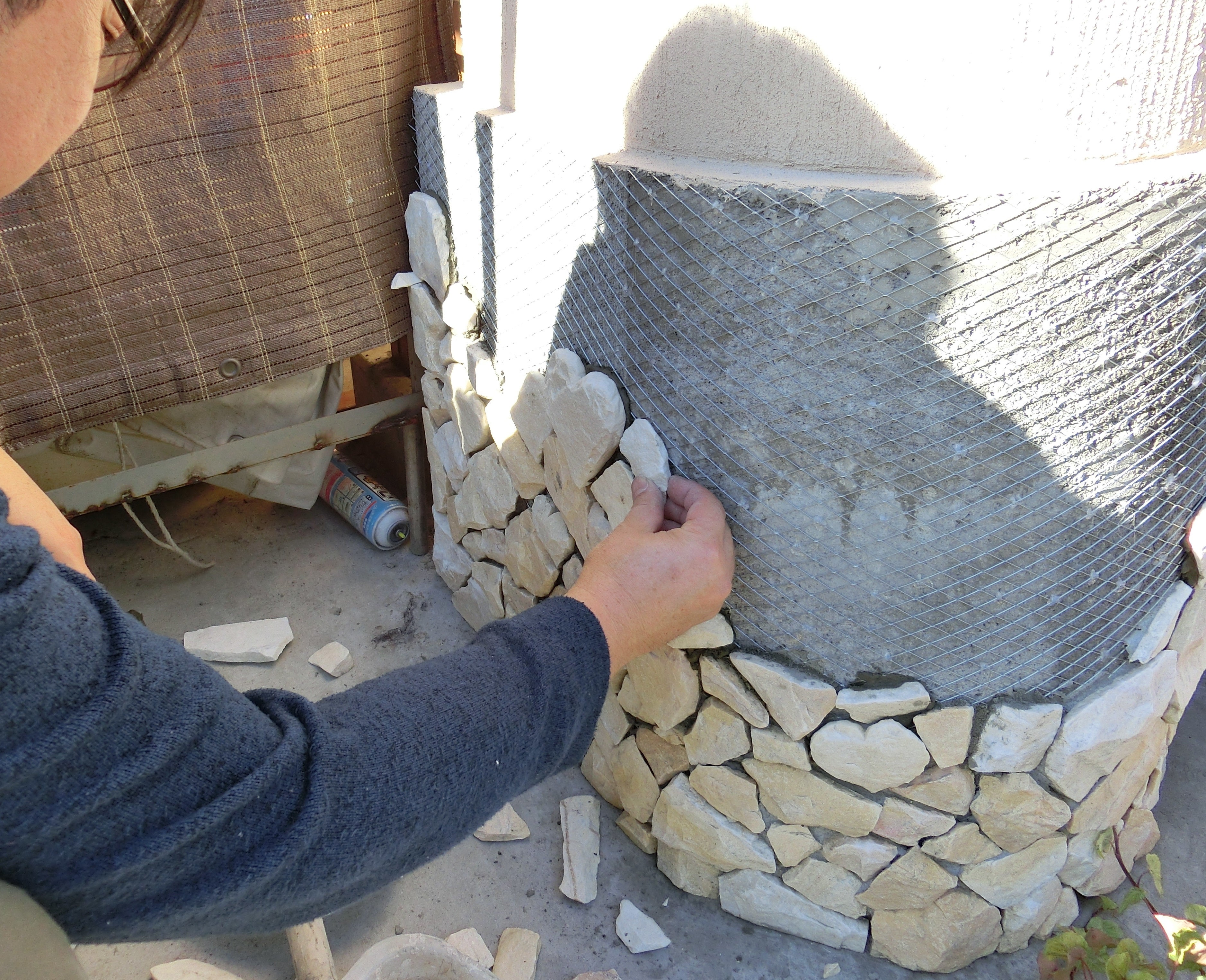 ❑外壁の角に天然石を模した軽量ブロックでの装飾¥9,800/m
