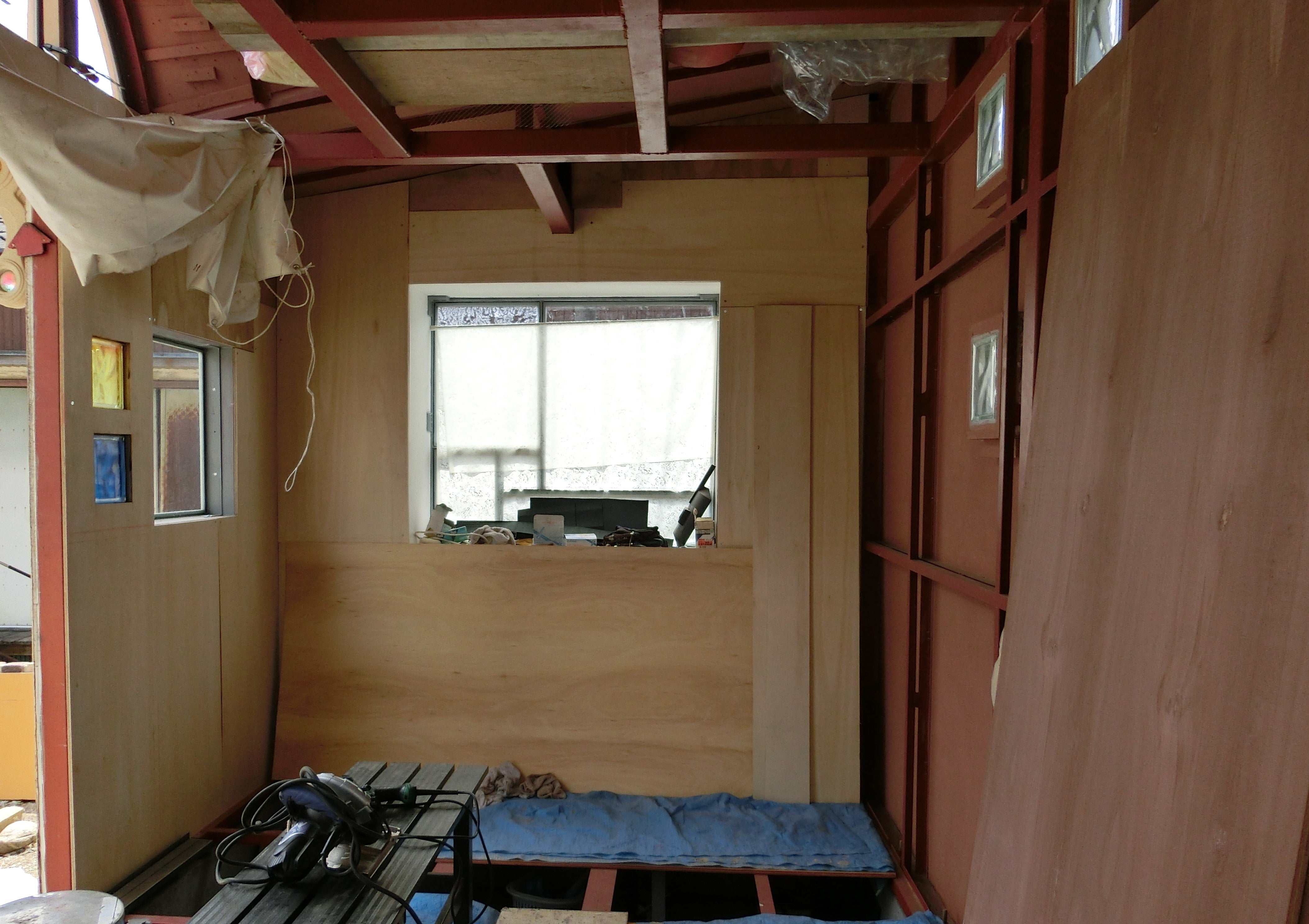 床と壁は最優先で進めます。現状でも室内でくつろぐことは可能です。
