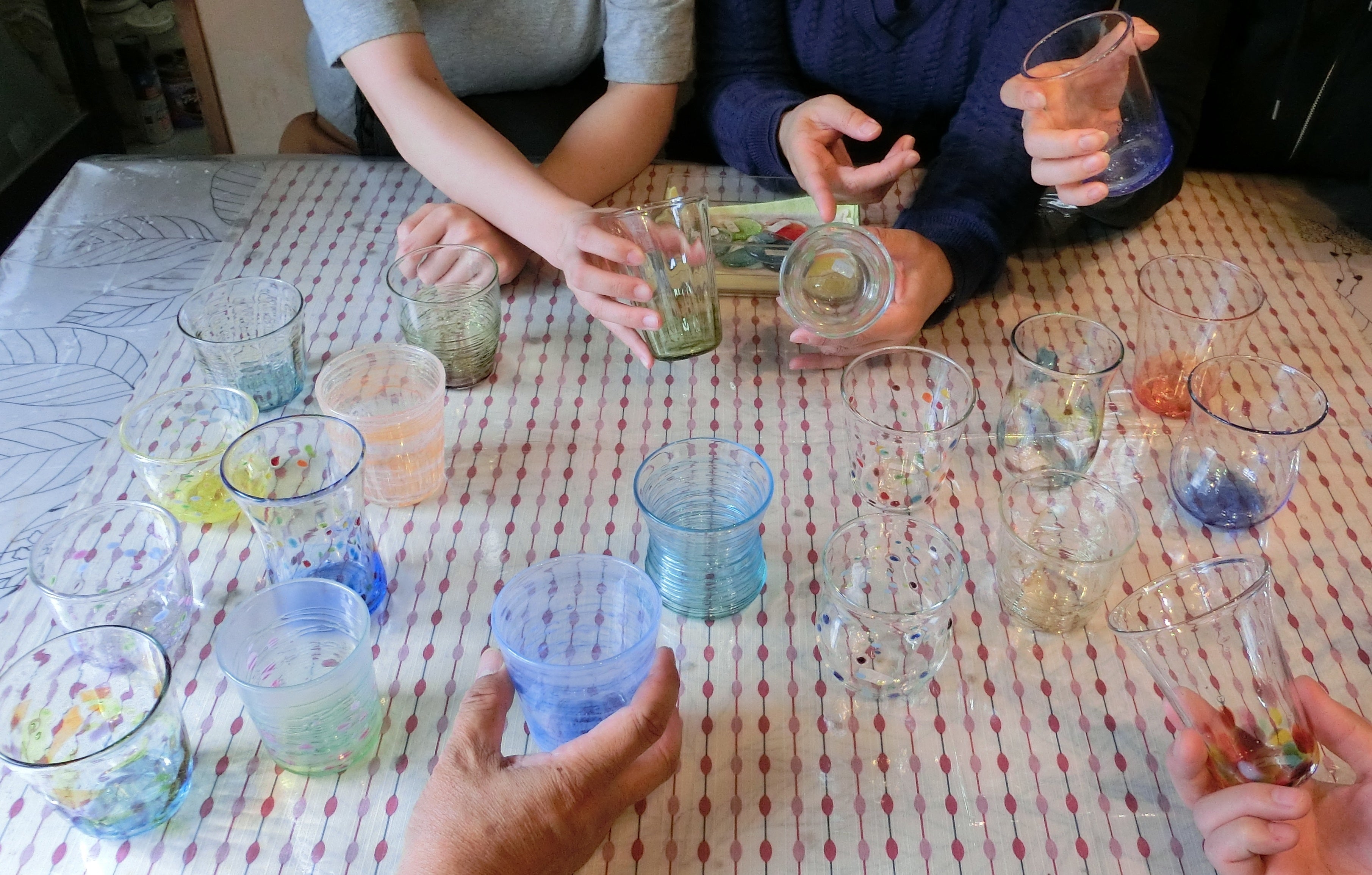 体験制作例これまでに、川口市の科学館や地元の小・中学校の校外学習などで、ガラス工芸教室を実施してきました。一般の人々にもガラス工芸の楽しさと可能性を知っていただけるように、微力ながら地域に根ざした運営を心掛けて活動しております。
