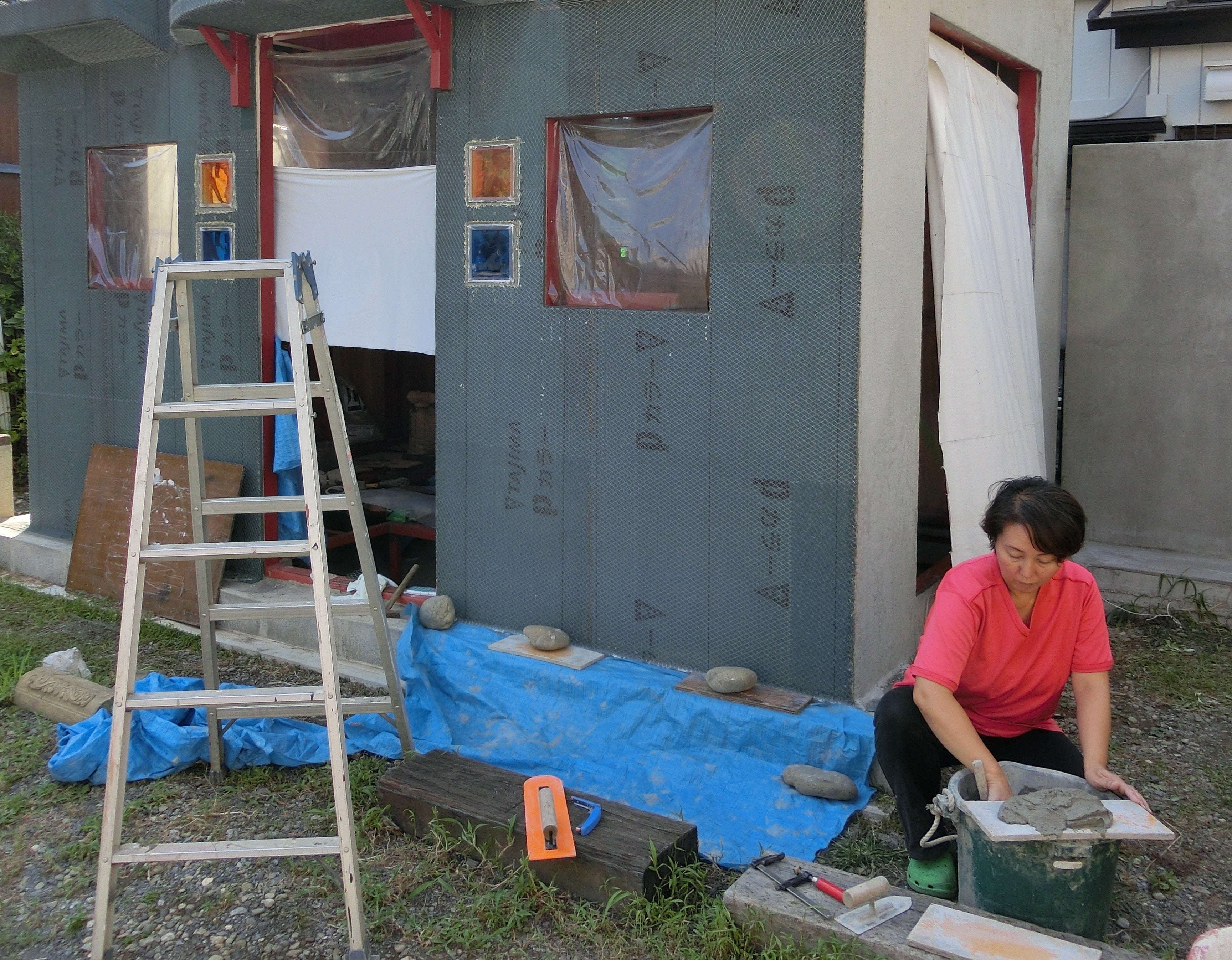 2019/09/13 22:22お久しぶりでございます。台風の影響なのか、つい最近まですごく暑い日々が続きましたね。1ヶ月以上、後無沙汰しておりましたが、皆様いかがお過ごしでしたでしょうか。夏休みの喧騒が去り、ようやく小屋の建設に戻ってこれるようになったのが、つい最近のことです。皆様からご支援いただいた資金の一部で「塗り壁材」40kgを購入しました。吟味を重ね、自然素材のものを石川県の会社から取り寄せたのがこちらです。そして、悩んだ末に着色剤も購入しました。渋く、シンプルに真っ白の珪藻土&しっくいの壁にする予定でしたが、ビンテージ感を醸し出す意味でほんの少し、小さじ一杯程度のシトラス・イエローを添加しました。水分を含んでいるときはすごく発色が強く、心配したのですが、乾くと自然な風合いに仕上がりました。今回難しかった点はこての痕を極力残さず、均一に平坦な表面を目指したことです。作品の展示も視野に入れているため、あまり個性的な壁にしたくなかったのが理由です。日をまたいで、継ぎ足した部分はばっちり、段として残ってしまいます。そのため、一面は必ず一日でやり遂げなければなりません。根性でやり遂げました。塗り壁材はモルタルに比べて粘性が強いので腕がパンパンです。完全に硬化した状態がこちらです。部屋全体がすっきりと明るくなりました。また、進展があればご報告いたします。 もっと見る