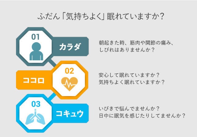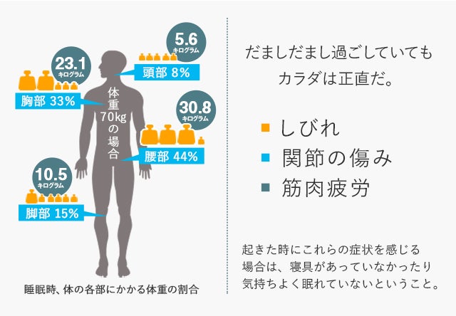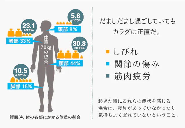 皮膚や筋肉に関節とカラダに負荷がかかっていては、眠って回復するつもりが逆効果になってしまいます。