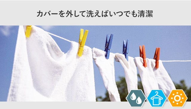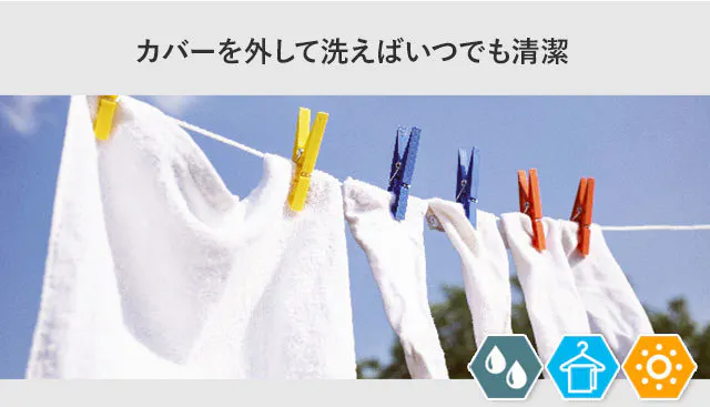 毎日使うものですから、どうしても汚れていきます。「Dacky」はシュッシュとスプレー型の除菌剤をふりかけるだけでなく、カバーを外して洗濯することができますので、気持ちよく眠ることができます。※洗濯ネットに入れて洗濯機をご利用ください。