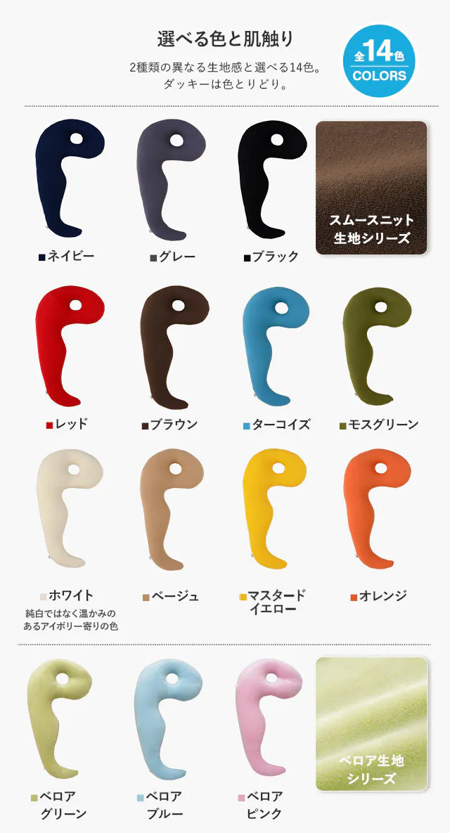 汚れやすい抱き枕。選べる14色のカバーはもちろん洗濯OK。