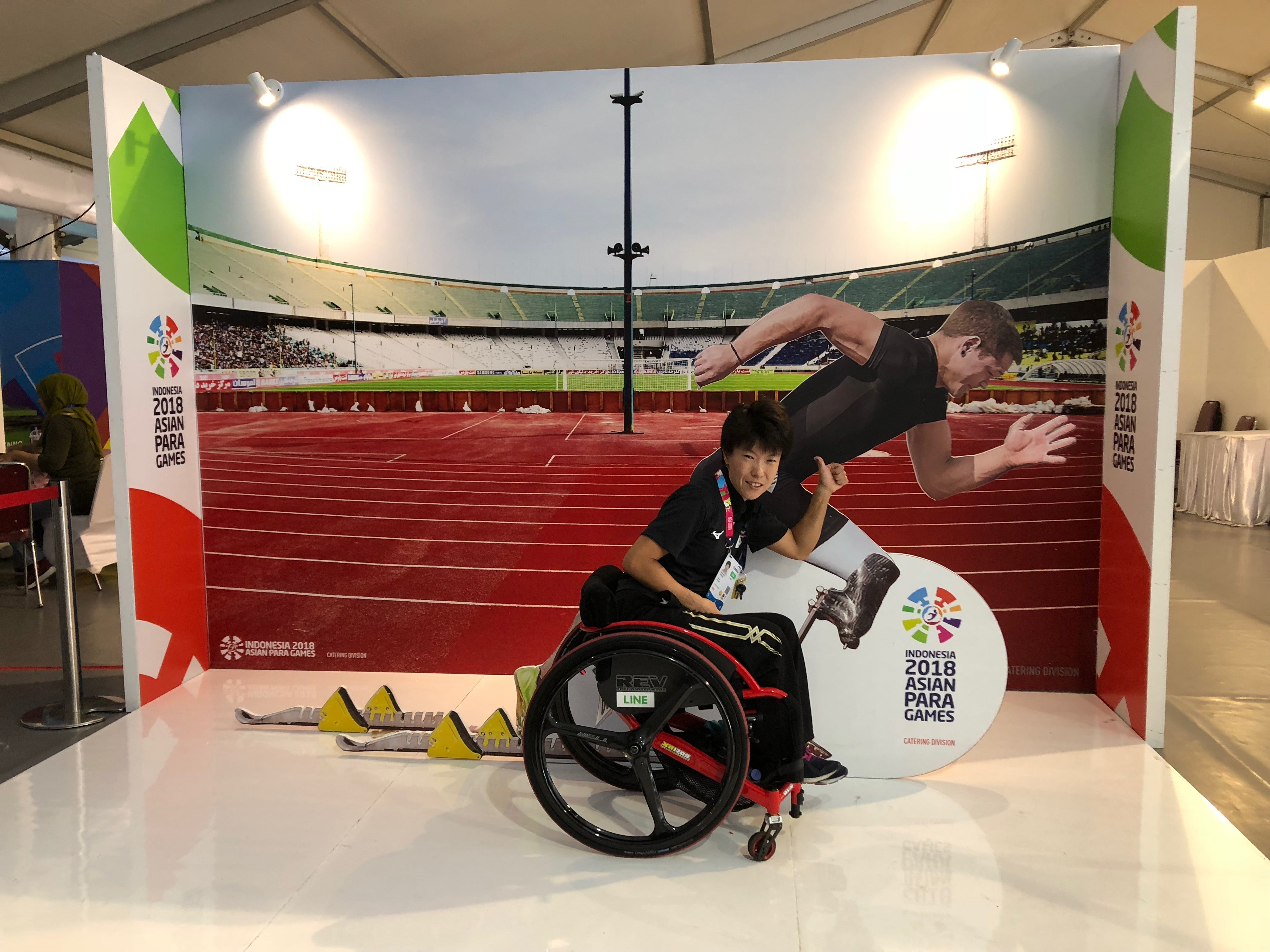 車いす陸上競技(短距離/中距離)を始めて5年間が経過しました。競技を始めた当初は、車いすマラソン大会に出場している仲間から車いすレーサーでの走る事を教えて頂きながら、車いすマラソン大会も一緒に出場していました。陸上競技を本格的に行う為、WPA(世界パラ陸上競技連盟)による「障害程度による競技の平等性」を求めた障害クラス分けを受けた後、車いすマラソンから自分の所属クラスで実施されている短距離と中距離に種目変更して日本一を目指しました。そして、インドネシア2018アジアパラ競技大会へ日本代表選手として出場しました。