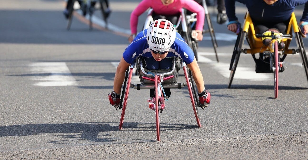 一度は半ば諦める気持ちになりましたが、身体に障がいを持つ前に行っていた自転車競技を思い出して「自転車競技=走る=陸上競技」というイメージが頭の中で出来上がっていた頃、車いすマラソンに誘って頂いたのがきっかけとなり陸上競技を始めました。