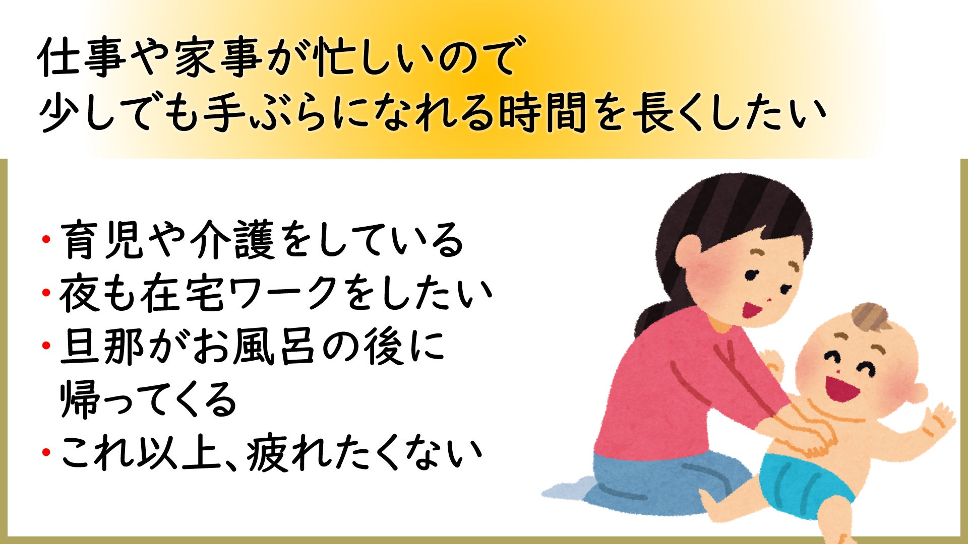 「この時間をなくせば、もっとリラックスできるし、空いた時間を自分に投資したり、家族と過ごしたりもできるはずなのに!!」