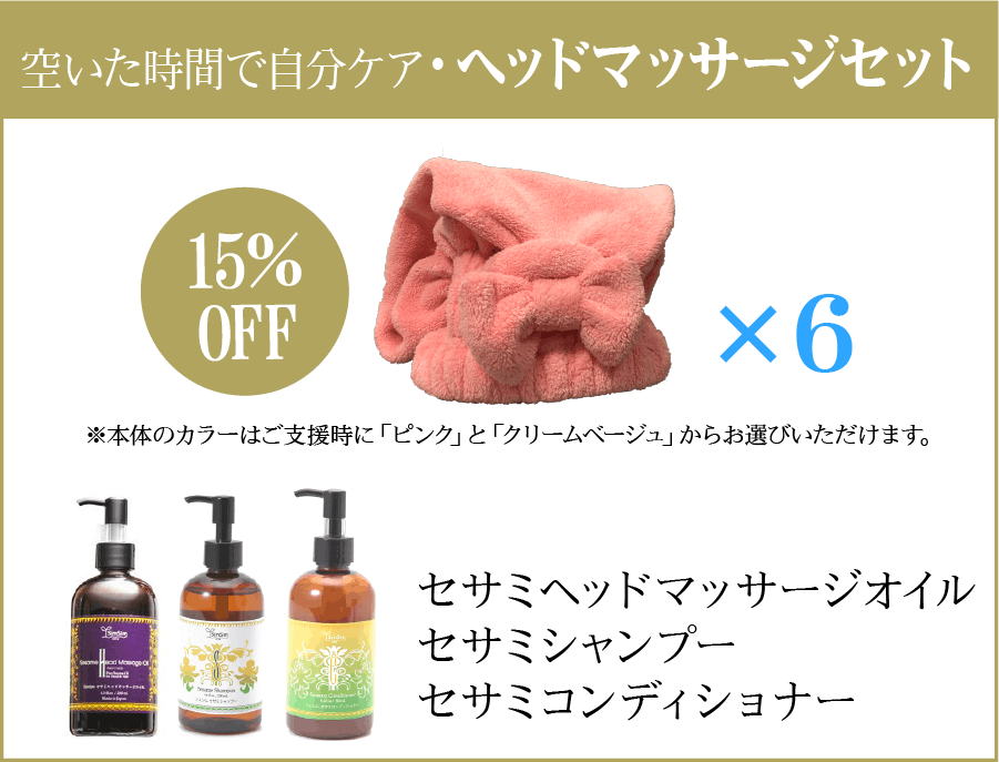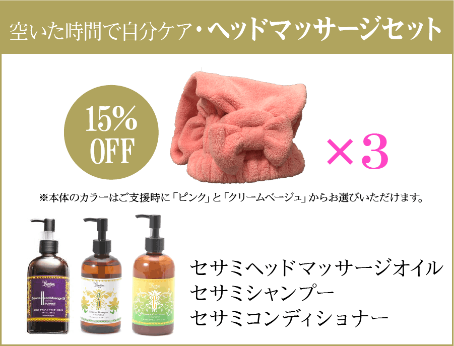 09.空いた時間で自分ケア・ヘッドマッサージセット(ターバンタオル3個)【15%OFF】