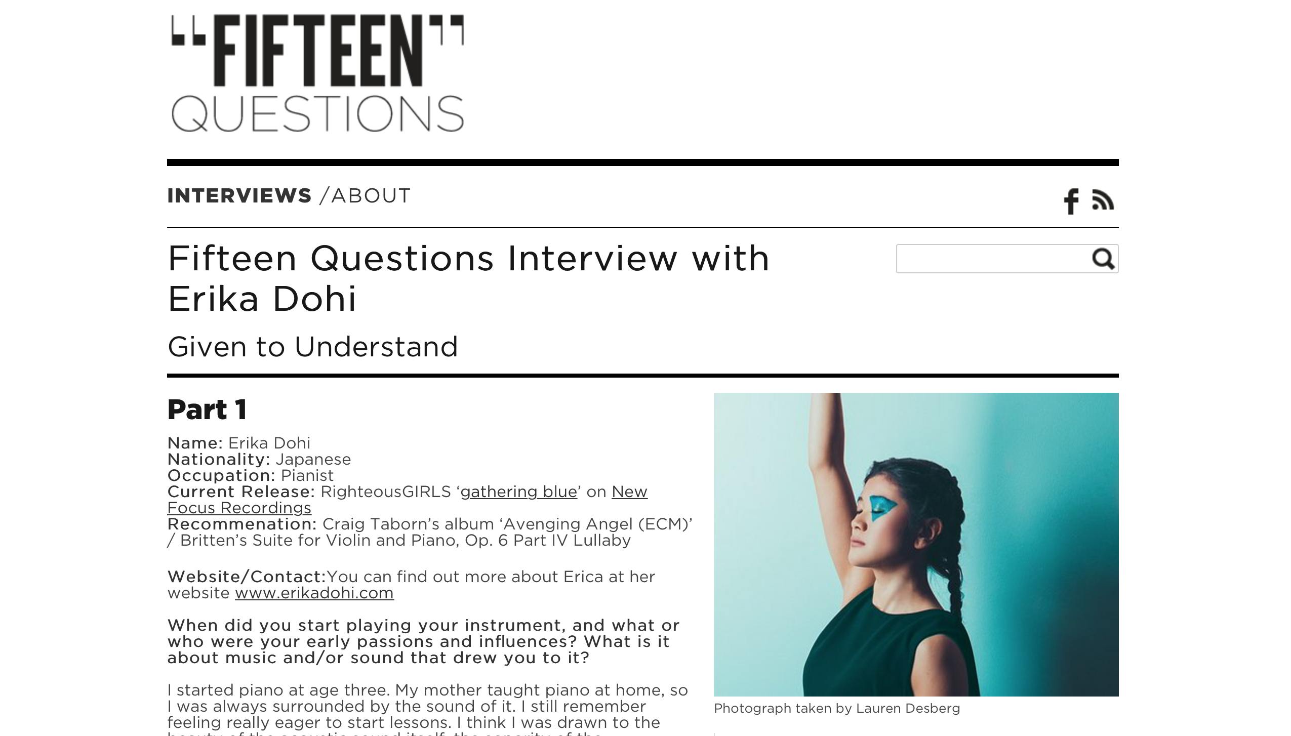 「FIFTEEN QUESTIONS」(15の質問)でインタビューを受ける