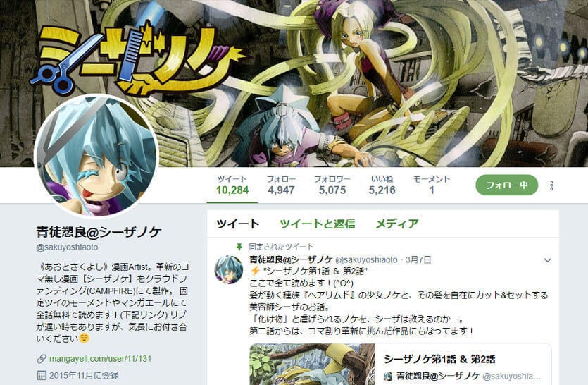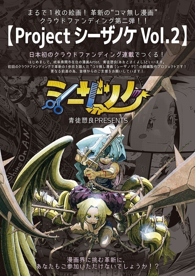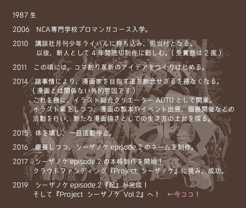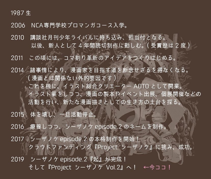 2017年末にクラウドファンディング【Project シーザノケ】が成功し、コマ無し漫画Artistとしての第一歩を踏みました。
