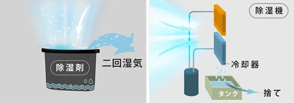 電気除湿機を使えば寝室の湿気は一時的に除去することができますが、タンスの中に置いてある服の繊維に浸み込んだ湿気はなかなか取ることができません。