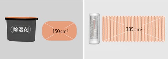除湿面積が385㎠にも達し、除湿力も倍増します。