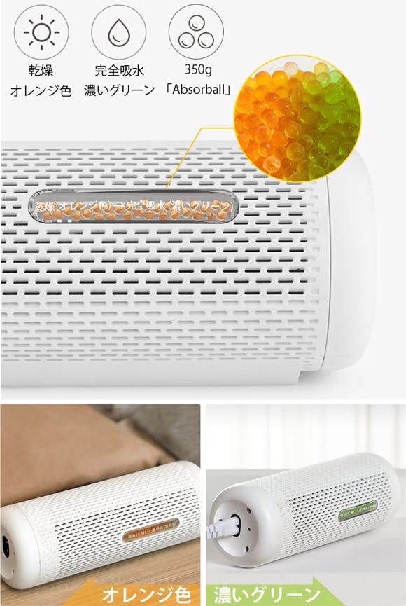 吸湿力が落ちても、電源に繋げ加熱することで乾燥され再び吸湿することができます。