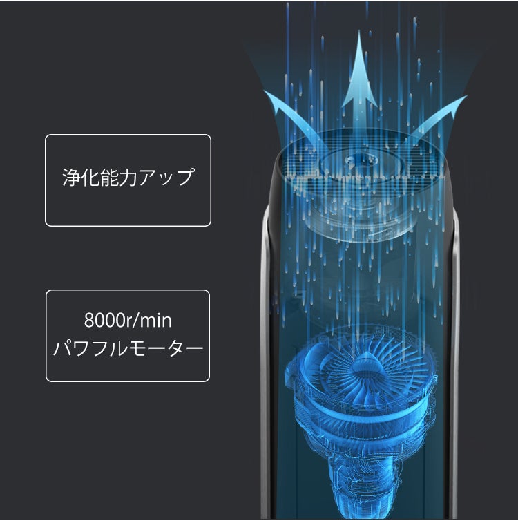 パワフルなモーターに駆動されたファンは多くの空気を吸い込み、多少の広い空間であっても周りの空気をきれいに清浄することができます。