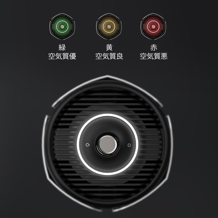 AutoBot Fresh 2 は「ホコリセンサー」と「ニオイセンサー」を搭載して空気の汚れとニオイを検知できます。LEDライトは緑・黄・赤の3色で空気の汚れ具合を知らせてくれるので、車内やお部屋の空気質の状況を即時に把握することができます。