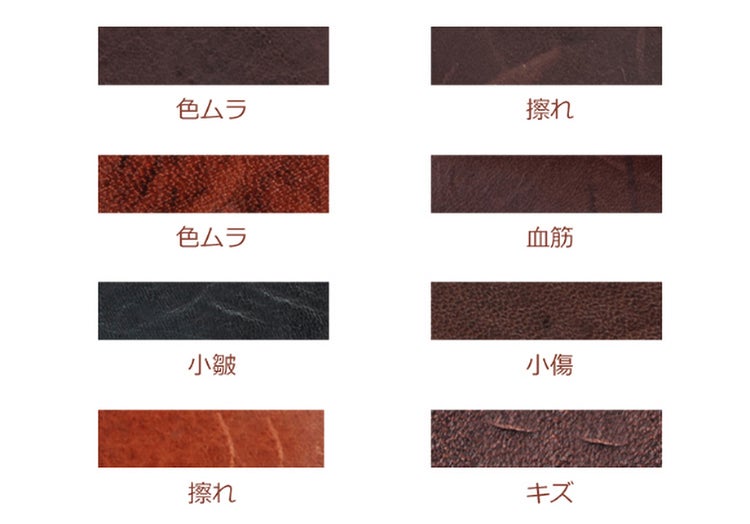 天然皮革のため、革全体に小傷・小皺・若干の擦れ・色ラムなどが入っている場合がございますが、本革ならではの、唯一無二の表情として、お楽しみいただけると嬉しいです。不良品ではありませんので、予めご了承ください。
