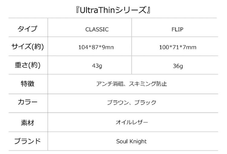 Soul Knight社の『UltraThinシリーズ』は、特別な裏材を採用しているため、磁気不良もスキミングもしっかりガードしてくれます!