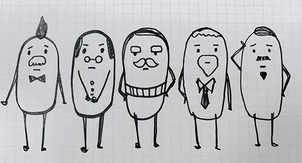 実は…、このプロジェクトを開始した2019年5月28日現在、「汁のゲーム(仮)」のゲームデザインやグラフィックなどは100%中の10%ぐらい、話がすすんでいる状態です。下は、キャラクターのラフ案その1。これからもどんどん進化する予定です。