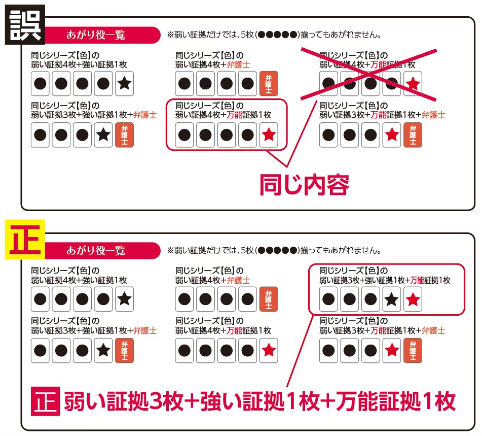 ・証拠カードの他に弁護士、探偵などのカードも使えること