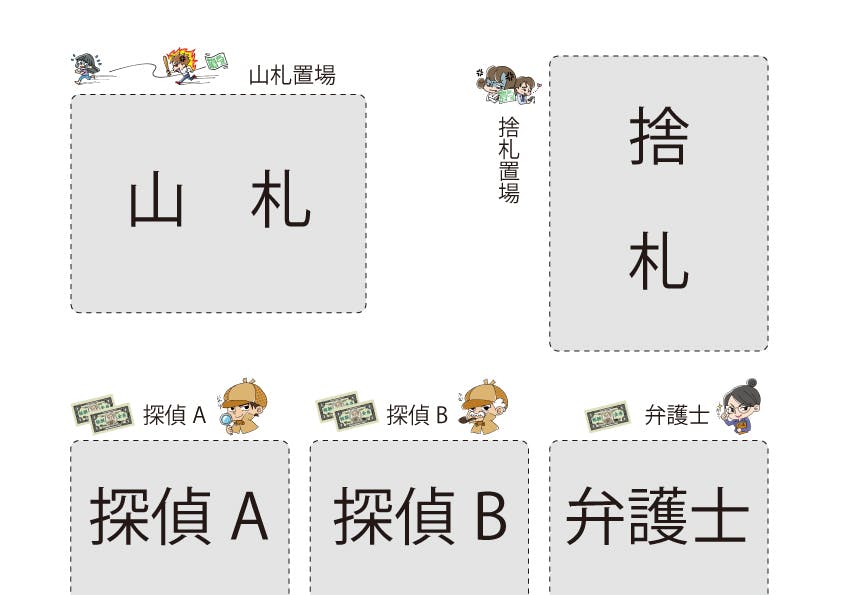 改めて次のストレッチゴールを750%と設定し、クラウドファンディングでご支援いただいている皆様にはプレイシート(カードの配置場所がわかるシート)を新たに制作し同梱することが決定いたしました!(下記、ラフ画像)