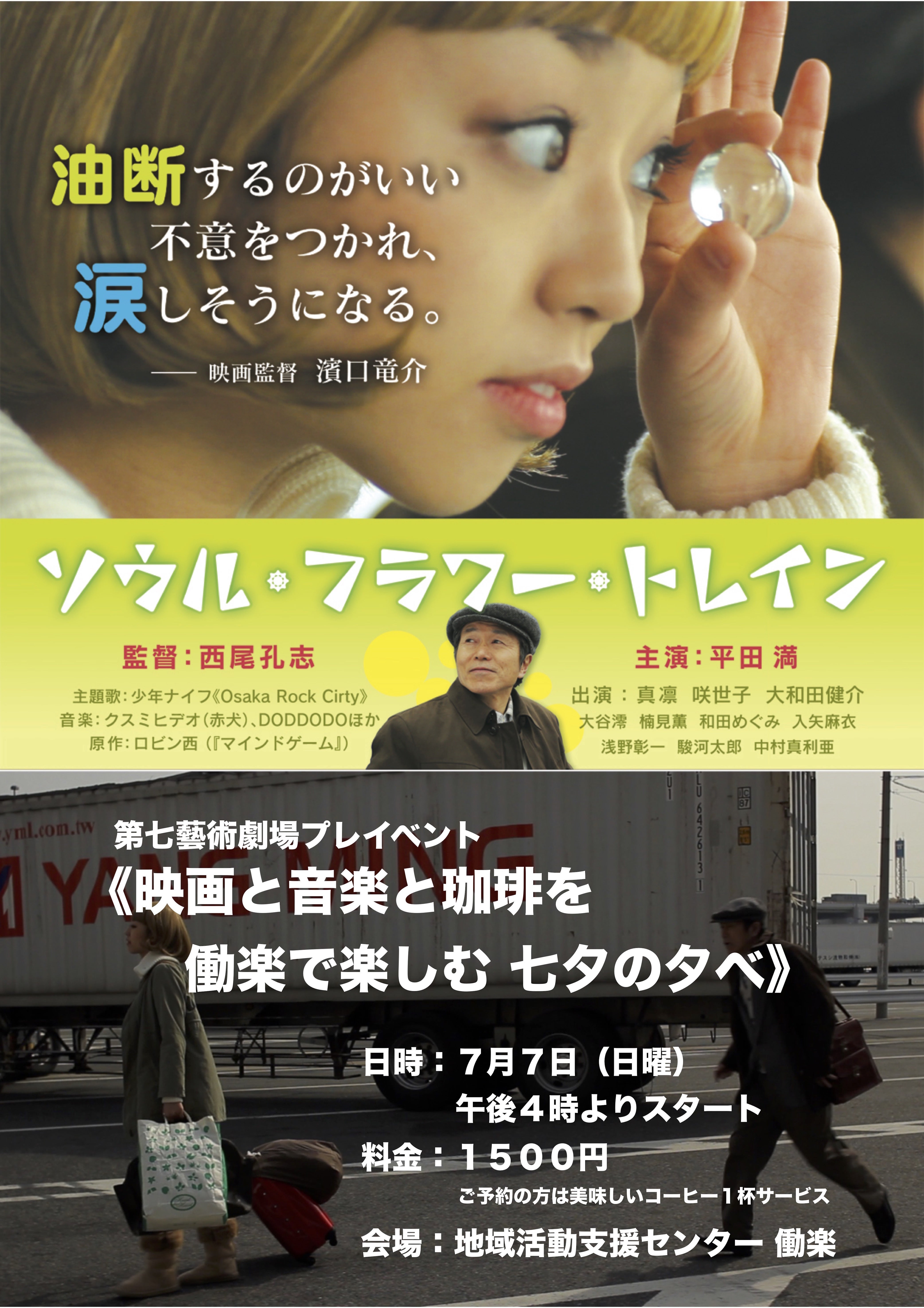 『映画と音楽と珈琲を 働楽で楽しむ 七夕の夕べ』▶︎ https://www.facebook.com/events/451237415439012/