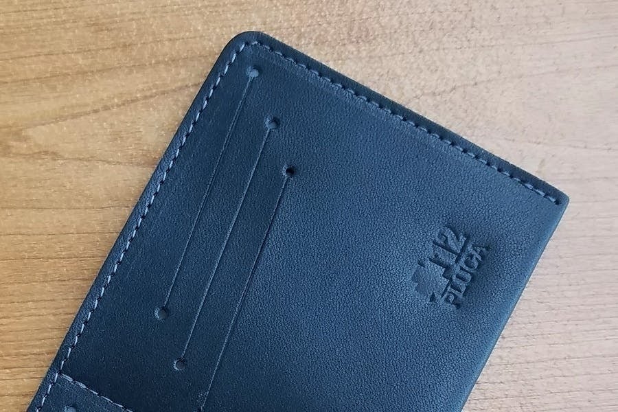 このカードホルダーに収納できるカードは、裏表合わせて12枚。間にはプラスチックの仕切りが設けられているので、カードどうしが干渉しあうことはありません。