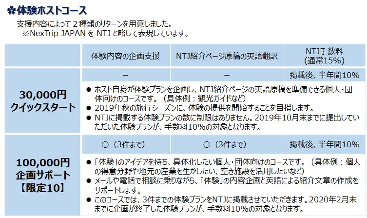 このプロジェクトでは、皆さんが「支援者」に徹していただくことも「体験ホスト」として体験提供者になっていただくこともできるようにリターンを考えました。