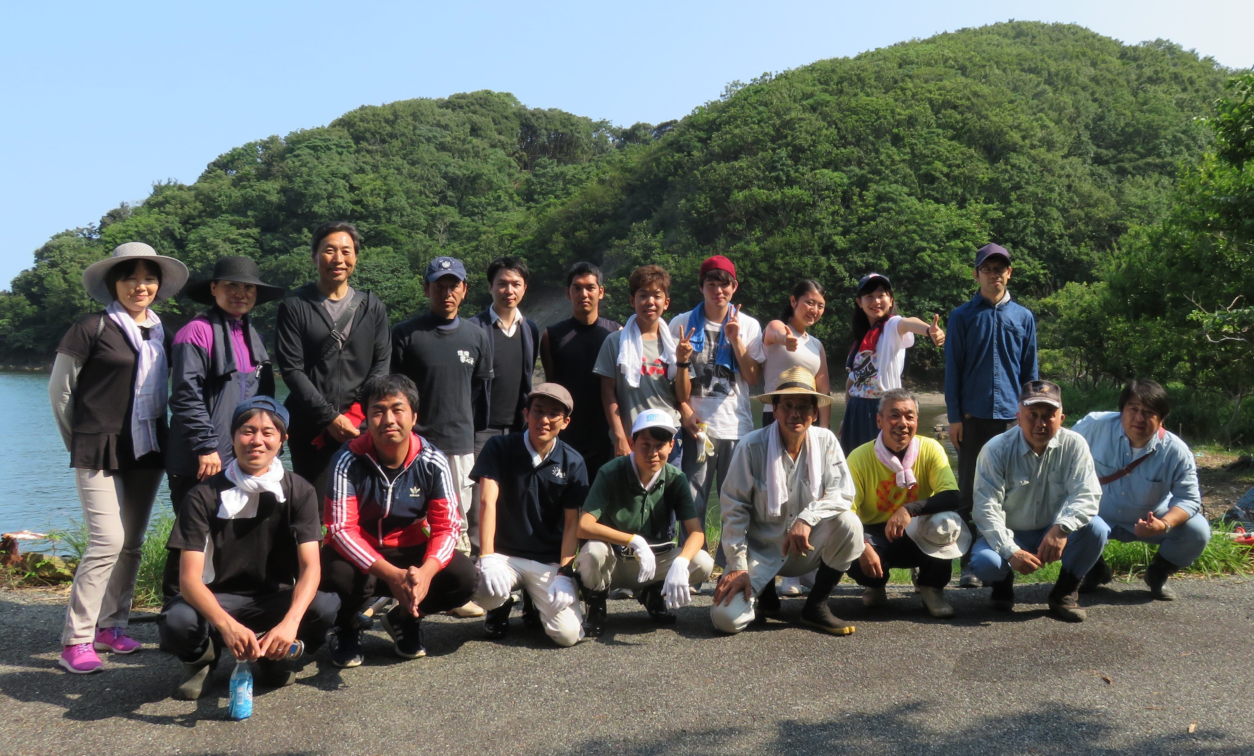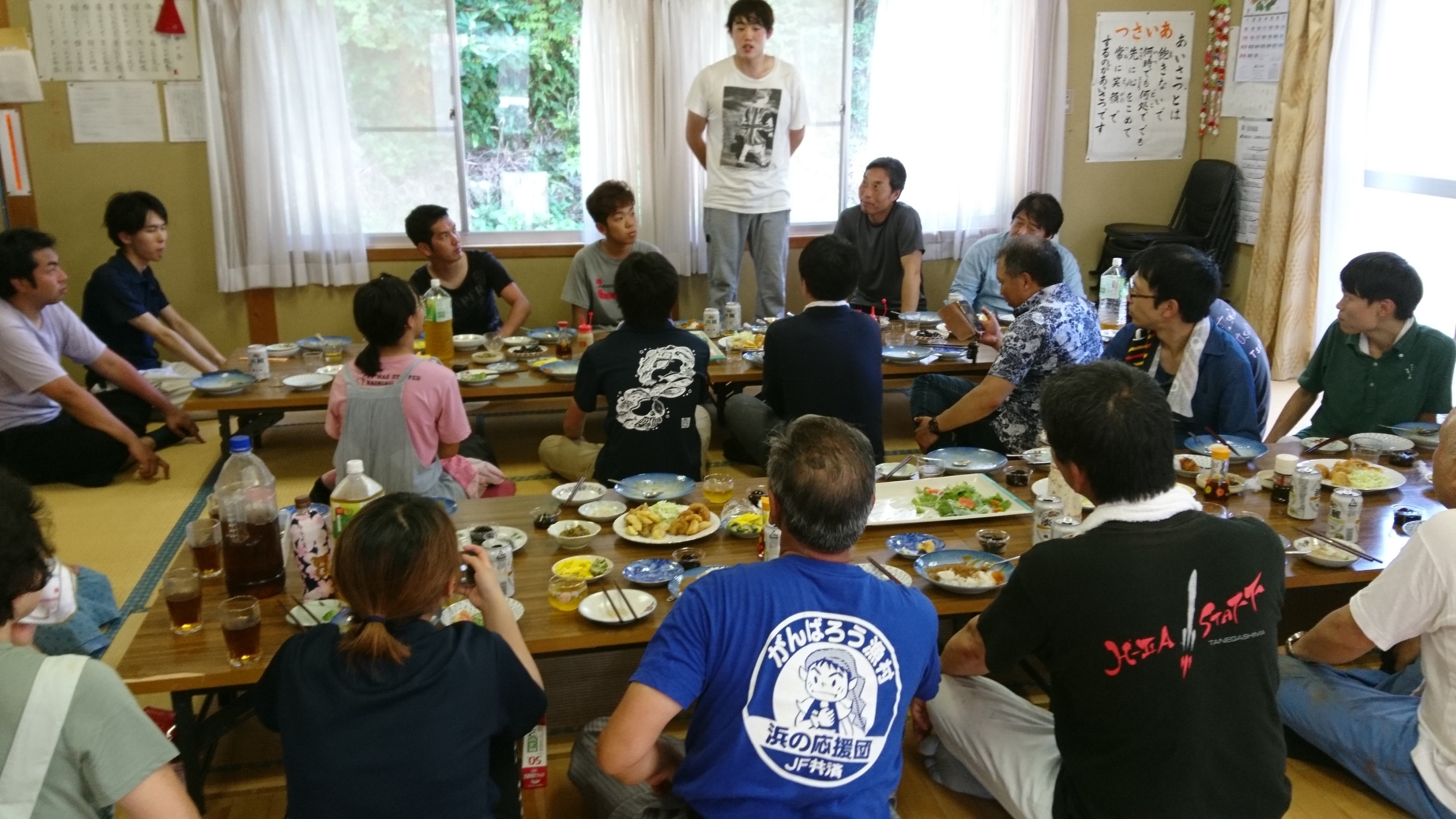 地域住民だけでなく、行政職員や島おこし協働隊、社会福祉協議会の職員と活動に賛同するボランティアの方々や、明治大学の教授・学生や、地元中学生にもご協力いただき、活動終了後は、参加者との交流も深めました。