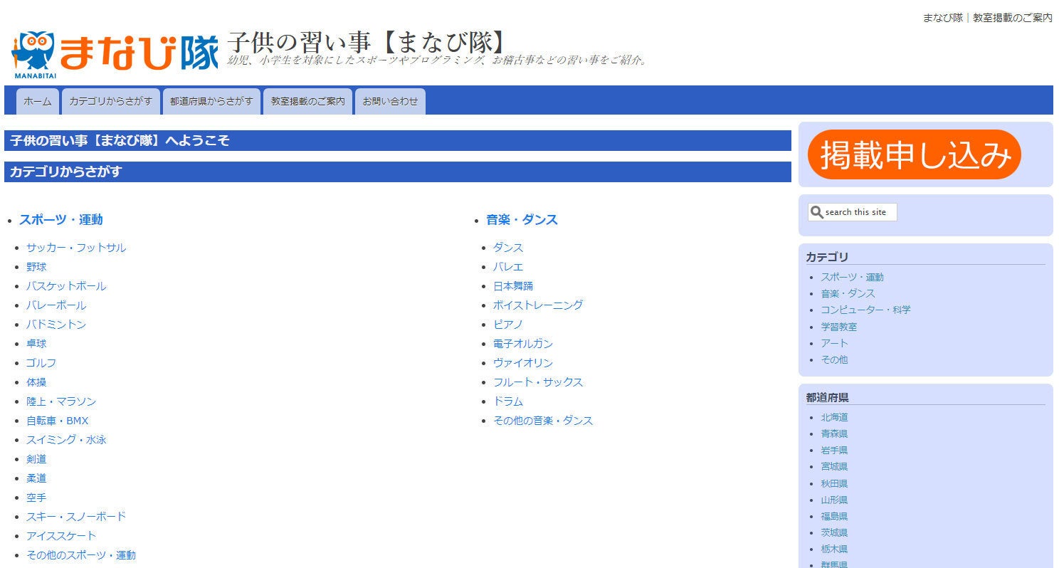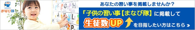 子供の習い事【まなび隊】( https://kids.manabitai.jp/ )へ、ベーシックプラン(有料プラン)で1年間掲載いたします。