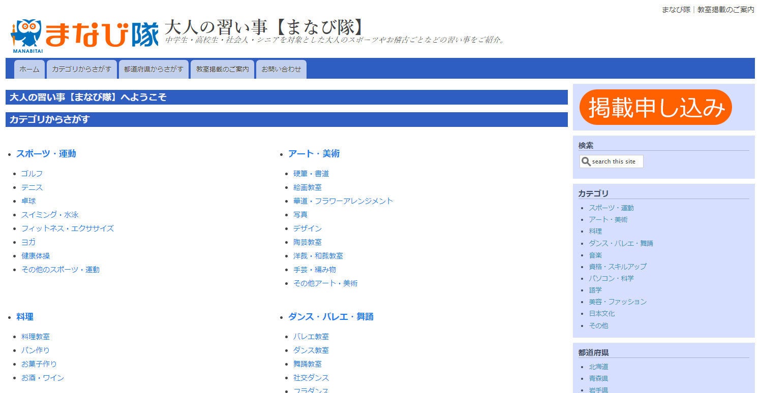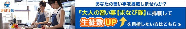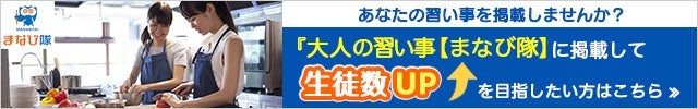 大人の習い事【まなび隊】( https://naraigoto.manabitai.jp/ )へ、ベーシックプラン(有料プラン)で1年間掲載いたします。
