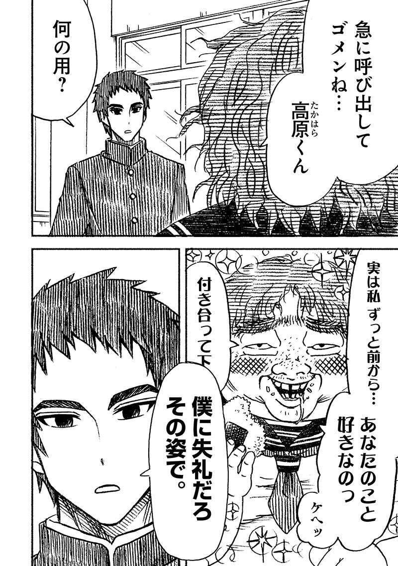 醜さの極みのような容姿の女子高生・ガリャ山ポヨ美が、クラスメイトの高原くんに告白するも、秒殺で玉砕。