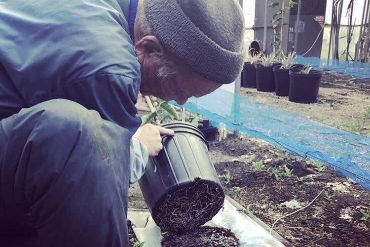 地元農家の小坂さん、農園の見学と苗の寄付、ありがとうございました!頂いた苗を大切に育て、研究に活用させていただきます!