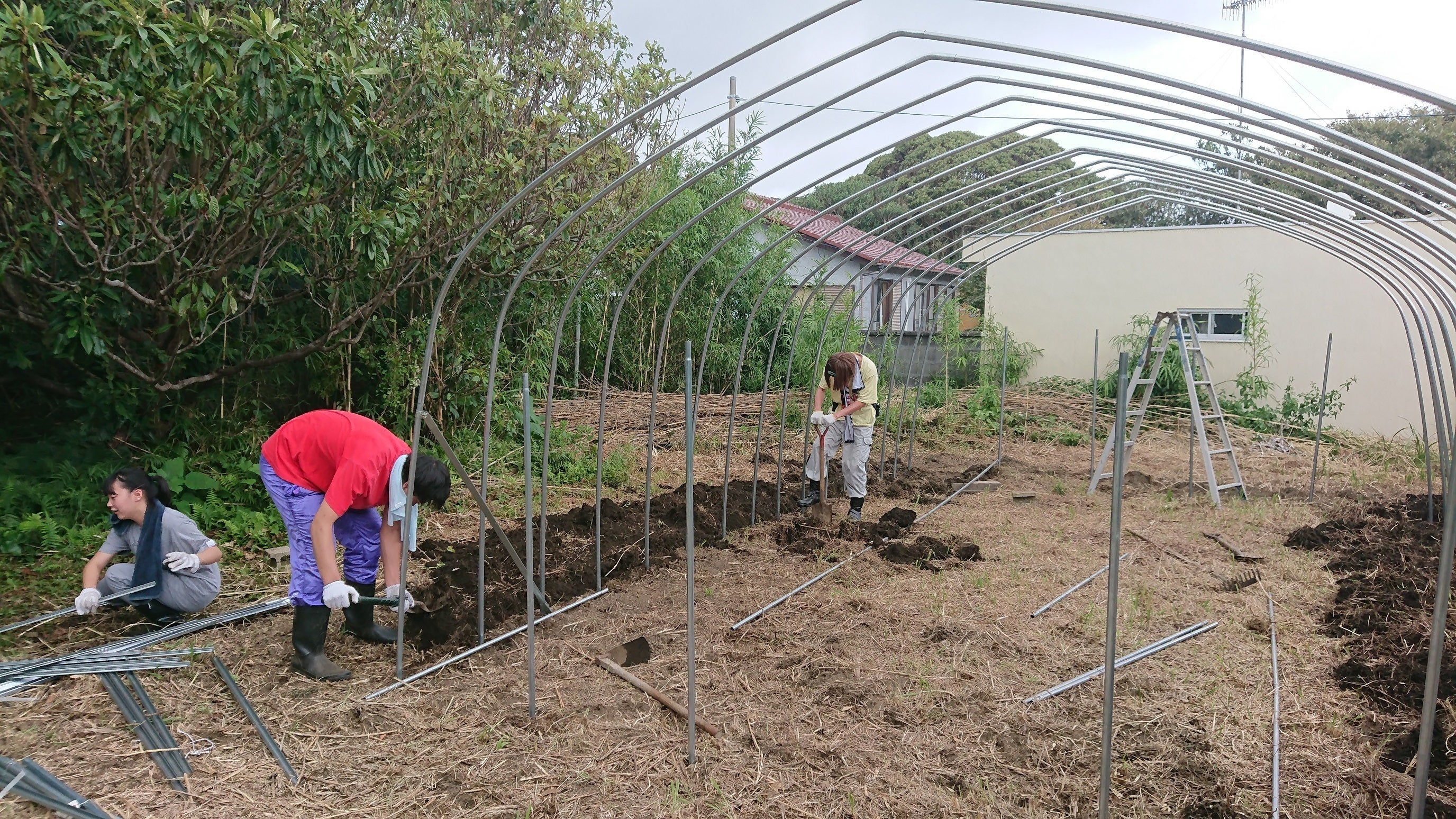 よって、地域の大人の指導の下、ルークスのみなさんに協力をお願いし、ハウスの建設を始めました。