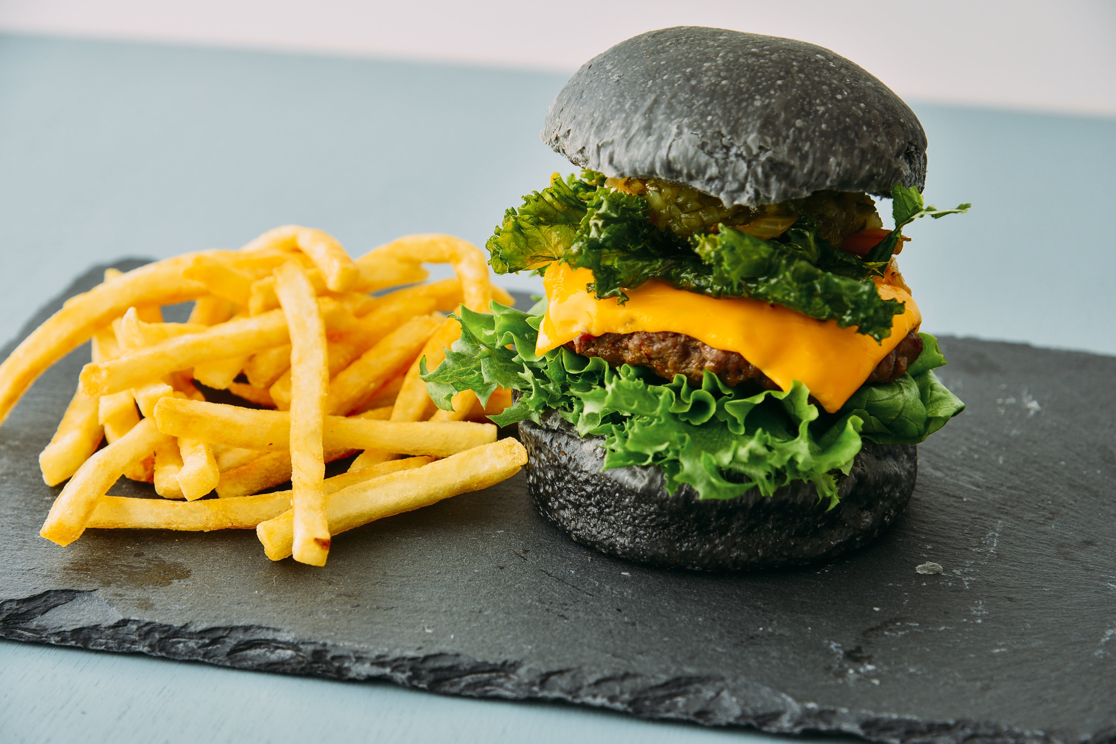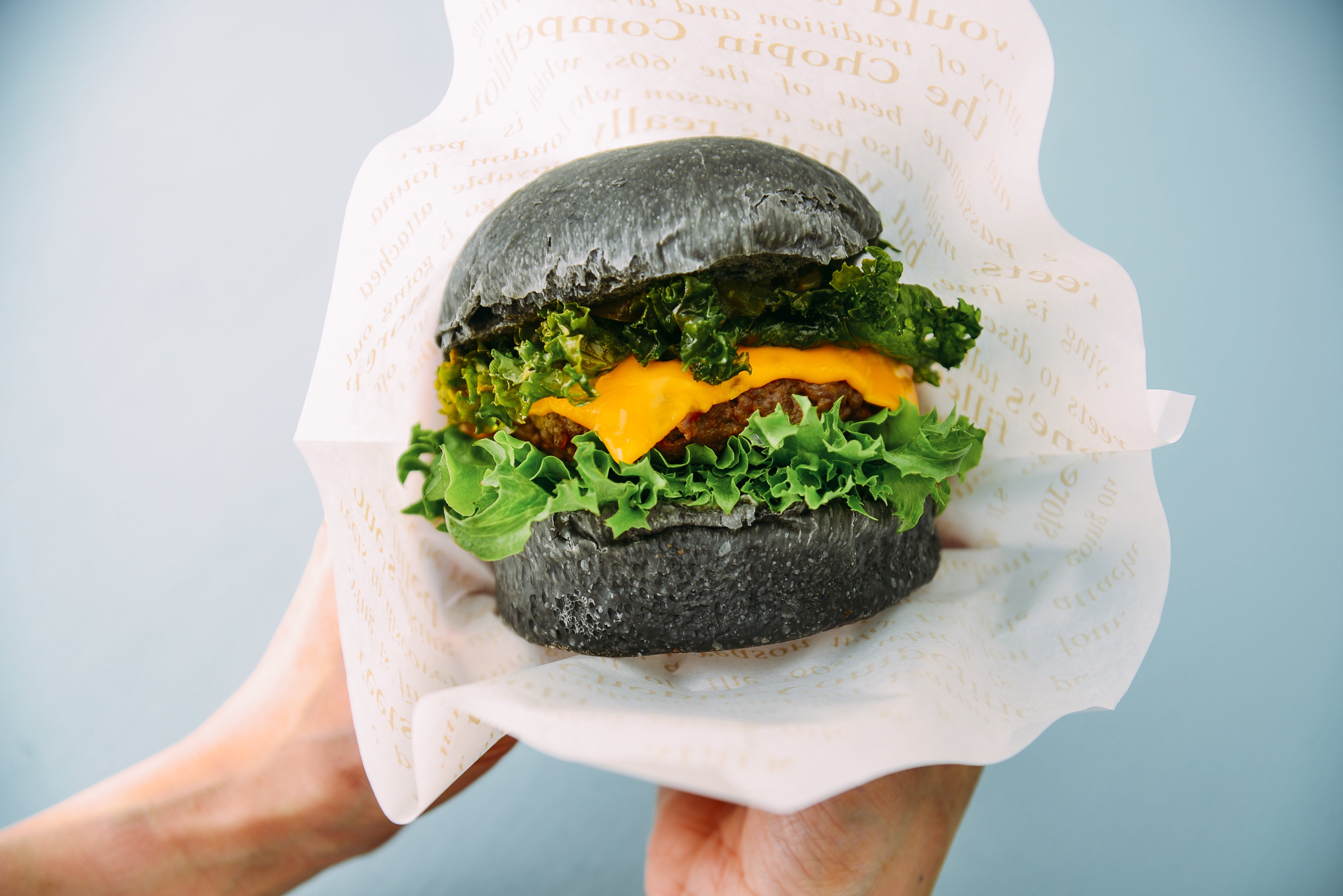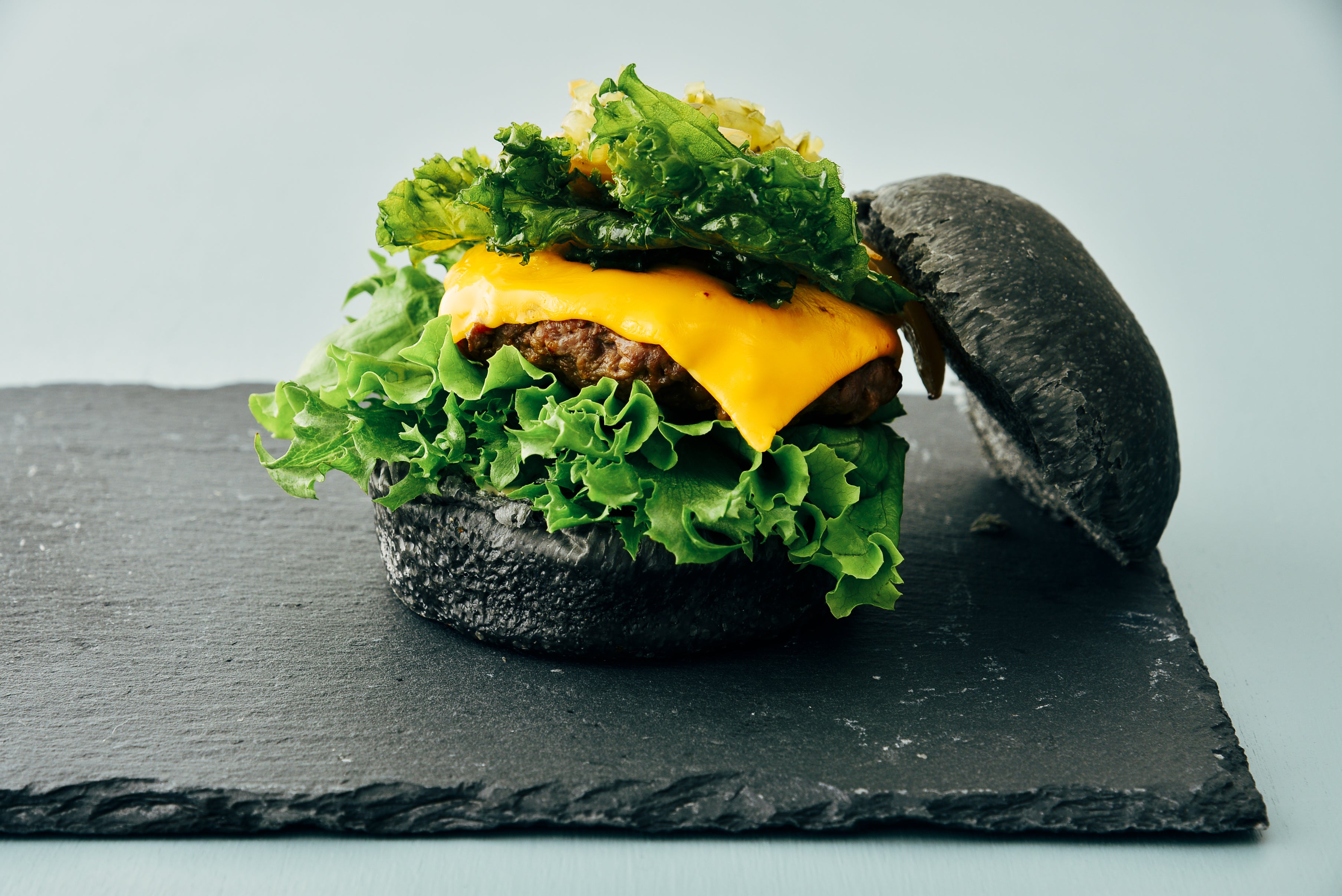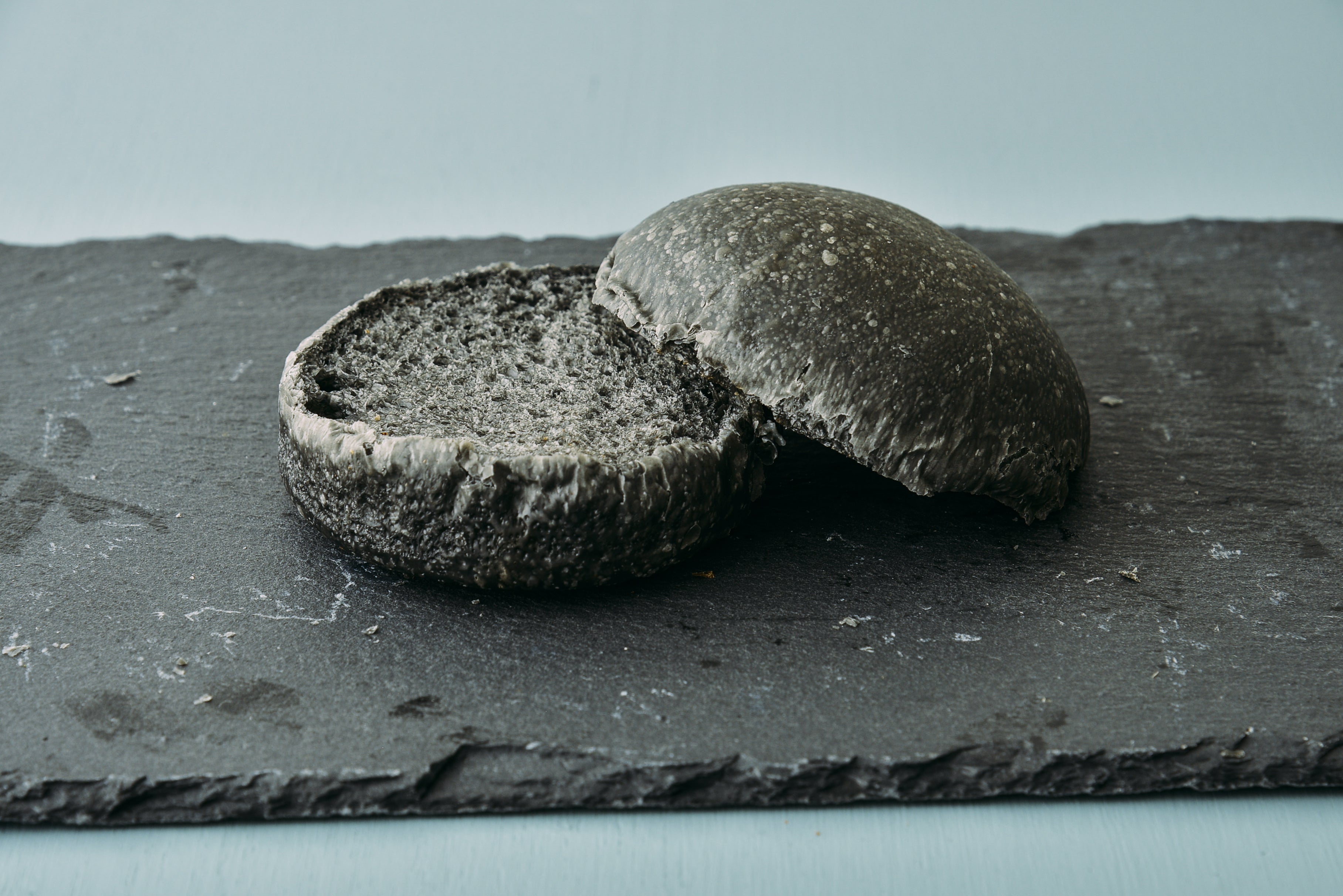 竹炭を練り込んだ生地で作るバンズを炙る事で、普通のバンズよりも少しだけ香ばしさが