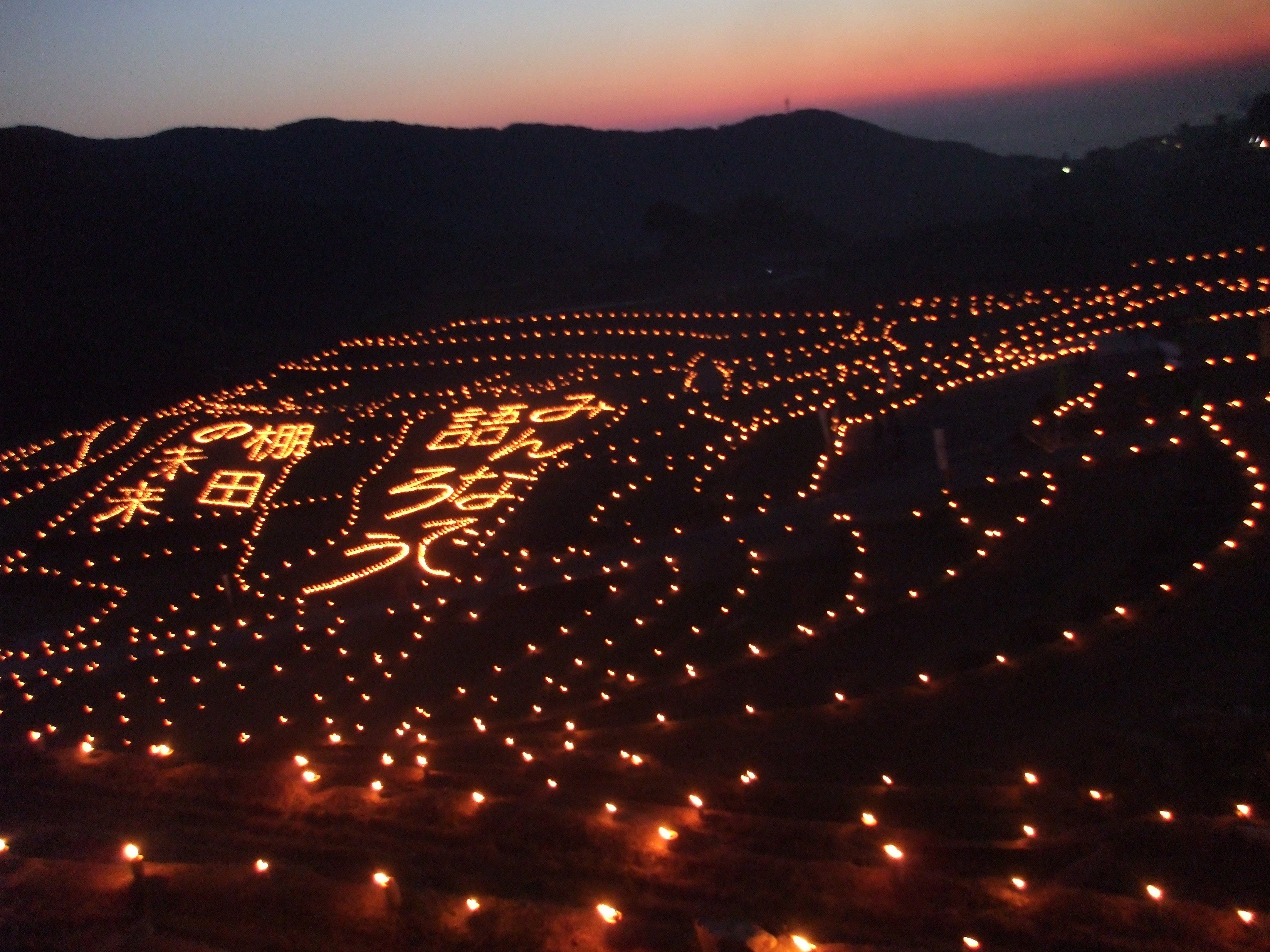 その後活動のきっかけの香美町の棚田でも仲間と一緒にキャンドルを棚田に並べ