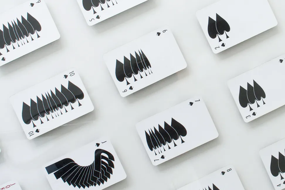 このトランプを作品として展示したところ、来場のお客様から展示のトランプが欲しいという声がかなり多かったため、クラウドファンディングを使って資金を集め、日本の国内メーカーに作ってもらい、自社で製品化することに決めました。