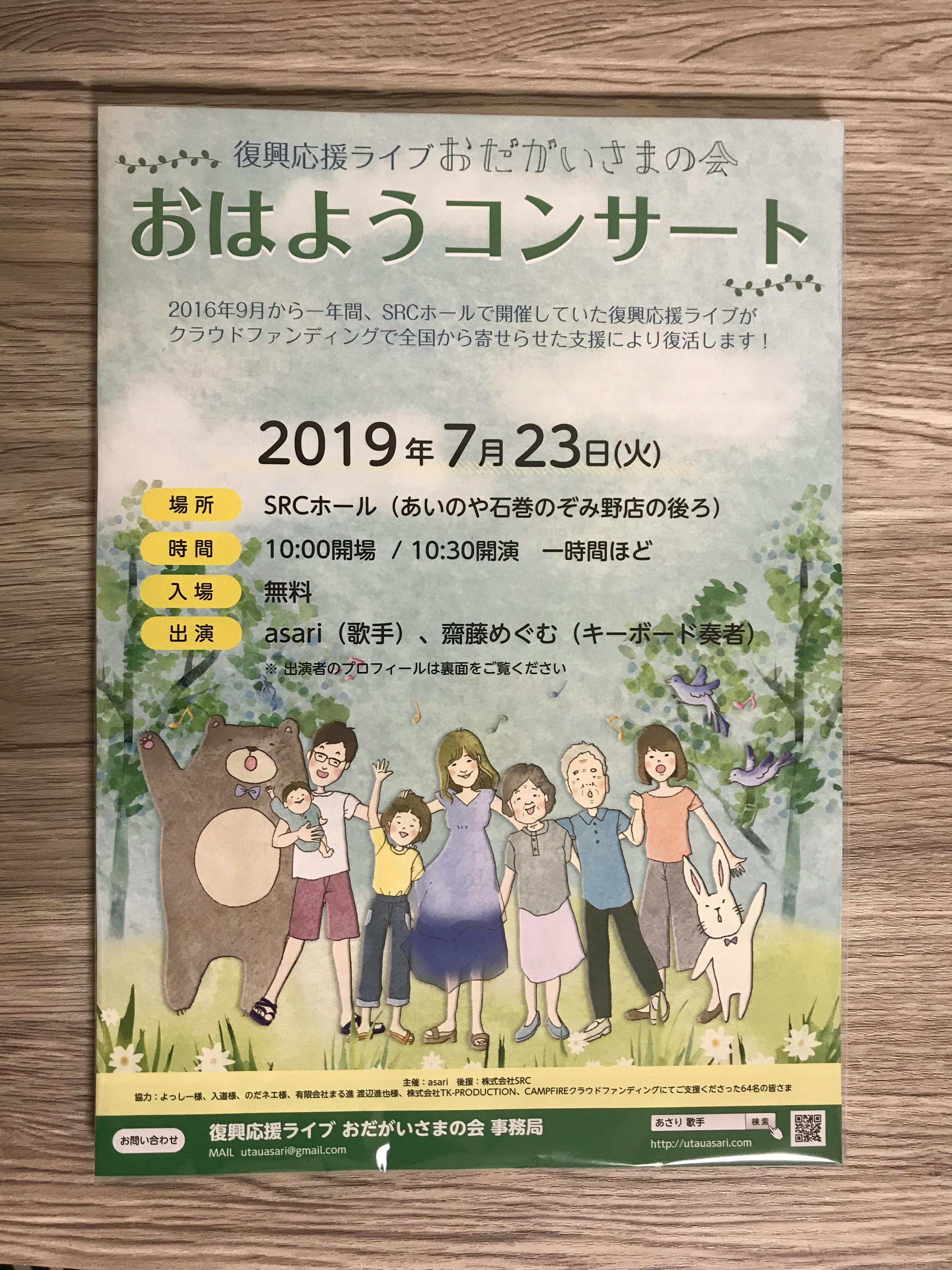 復興応援ライブのチラシを作成し、完成品が届きました。