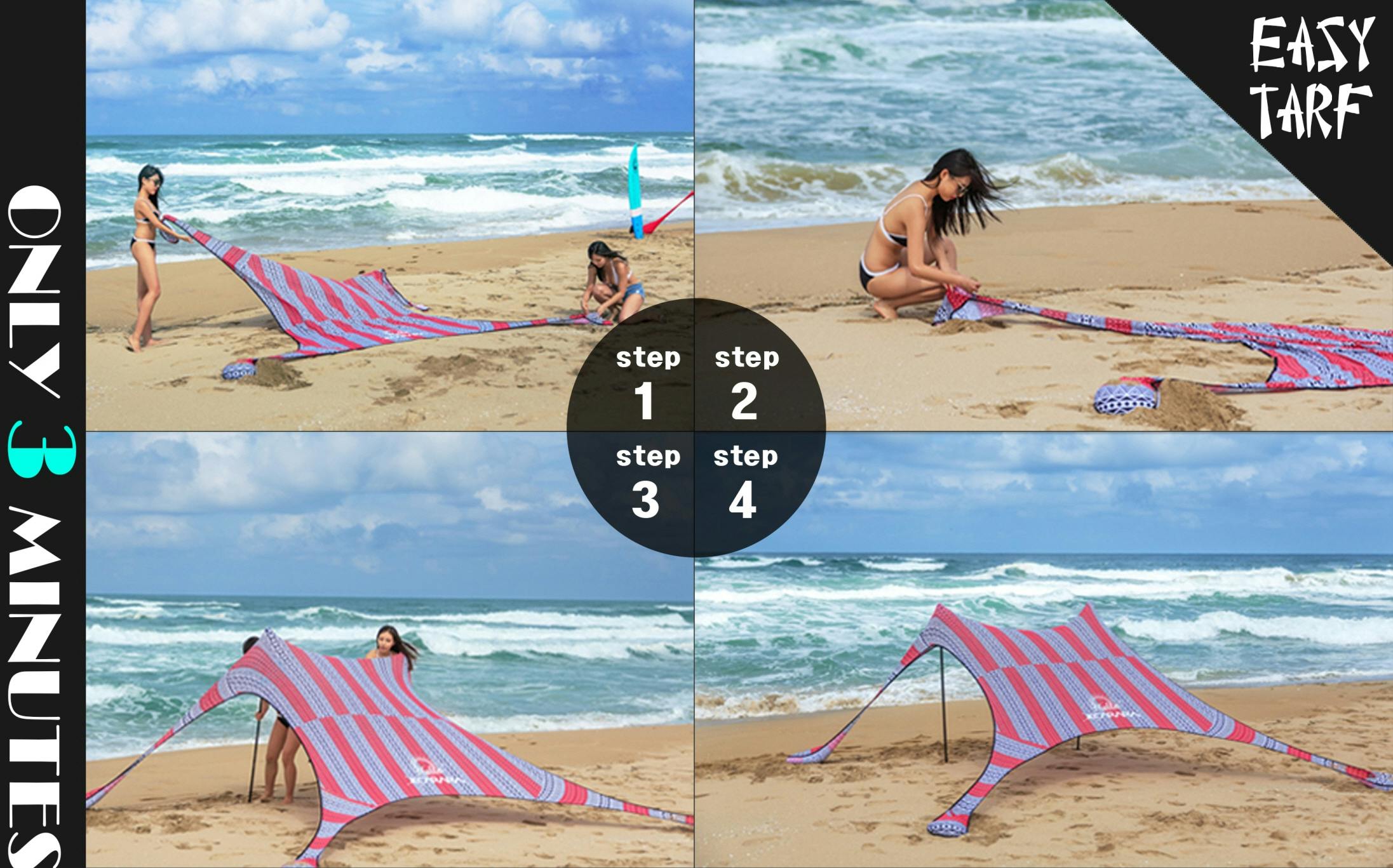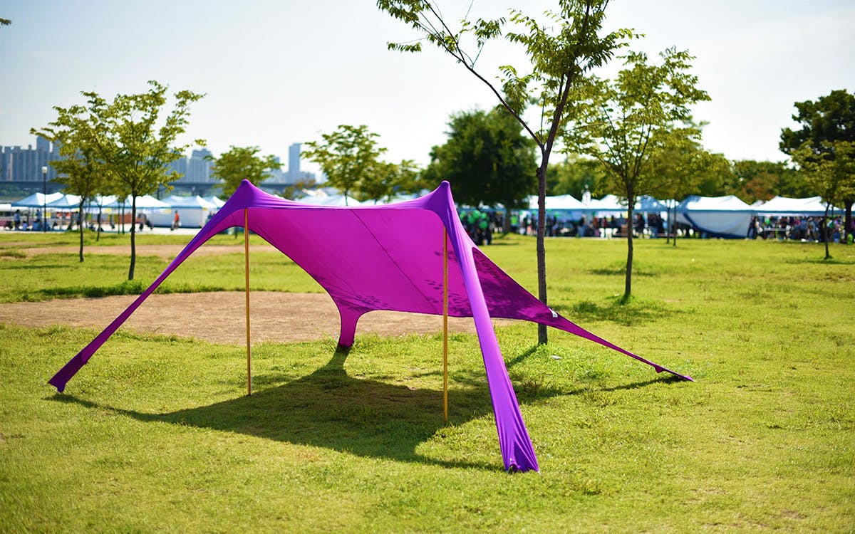 その旅行から帰国後すぐに、どこでも誰にでも手軽に設置することができるタープを設計し、試作品を何度と繰り返し、この商品に至りました。