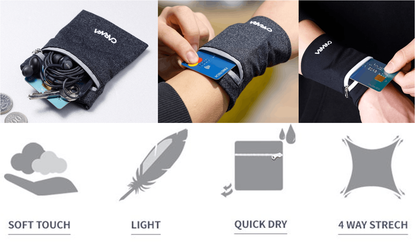 日本での最初のプロジェクトを記念して、購入された全ての方々のに、下の写真のスパンデックス(ヨガのスーツ素材)のHelloCaRaRAリストバンド型財布を一緒にお送りいたします。