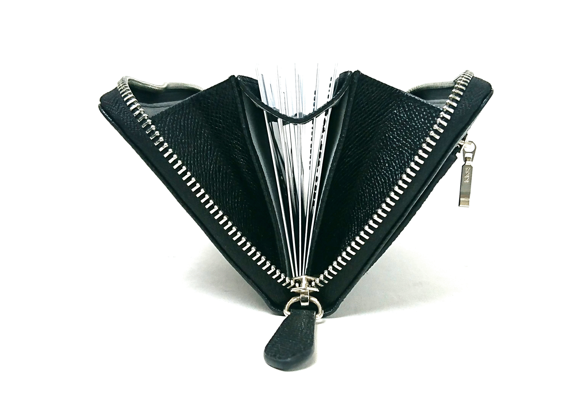 そして何より、カードを入れる部分がカードサイズに合わせて精巧に計算されて作られたスリット状になって空洞になっているため、カードをたくさん入れても薄くてスマートなのです!