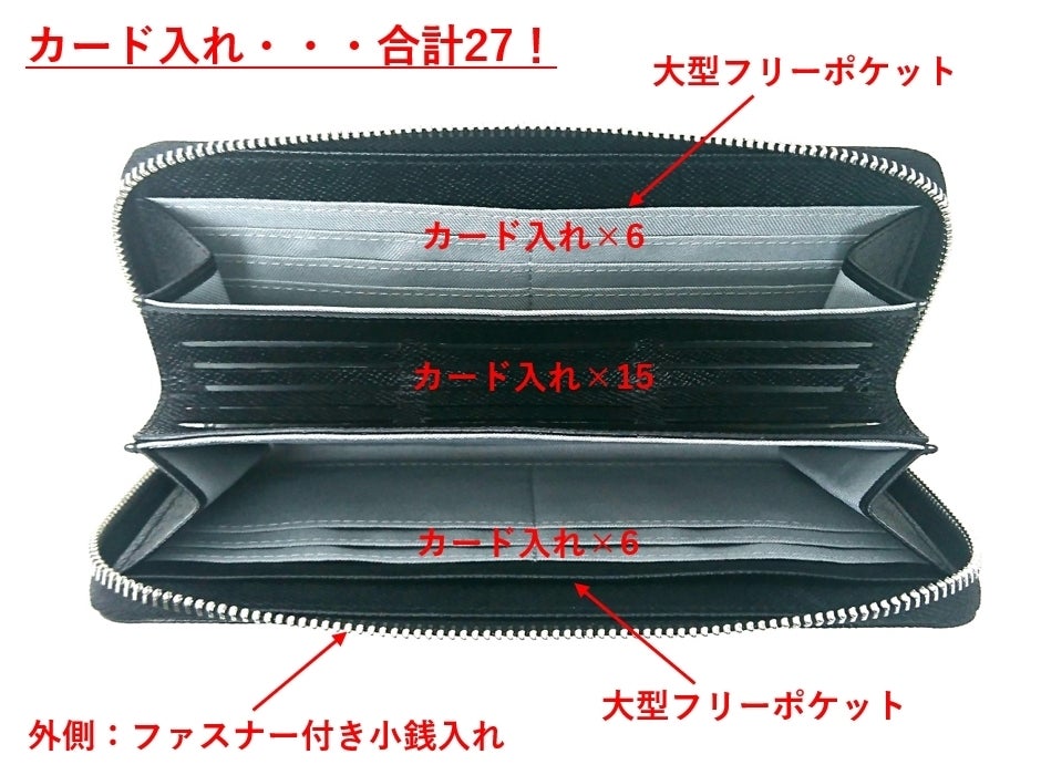 ■仕 様 : 札入れ×2 カード入れ×27 ファスナー付き小銭入れ×1 フリーポケット×2