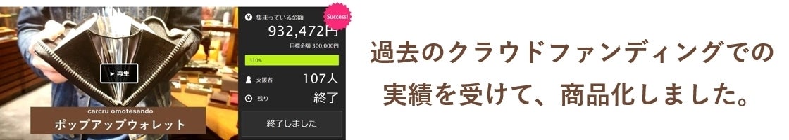 お買物の決済環境は急速に変化しています。これから凄まじいスピードで進んでいくキャッシュレス精算とカード時代に対応したウォレットの開発が急務だったカルクルは、昨年実用新案商品「ポップアップ」ウォレットを開発しました。このキャッシュレス時代に対応した次世代ウォレットを益々ブラッシュアップして完成度を上げて行きたいと思い、支援者の反応がリアルタイムでわかるこのプロジェクトを立ち上げました。