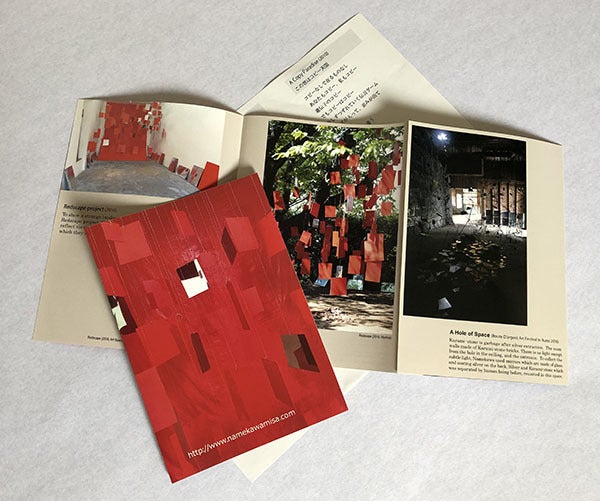 ●私の主なインスタレーションを掲載したリーフレットと直筆のお礼の手紙です。リーフレットは英語ですが、和訳のコピーをお付けします。リーフレットはサイン入りです。