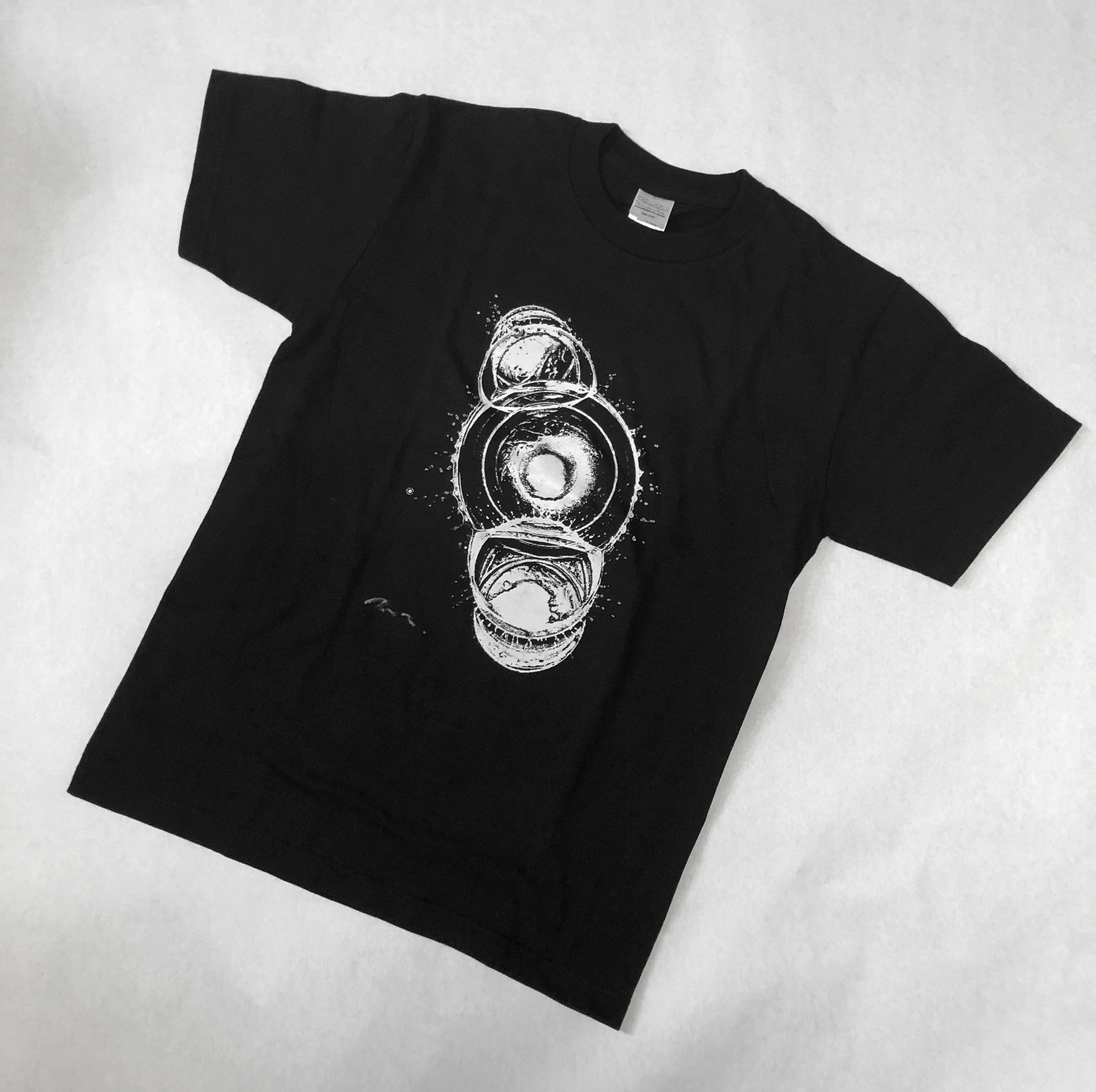 Tシャツの図柄は、シャボン液を使用してできた図柄で、シルクスクリーンで転写しました。独特の勢いある線を楽しんでください。サイン入りです。