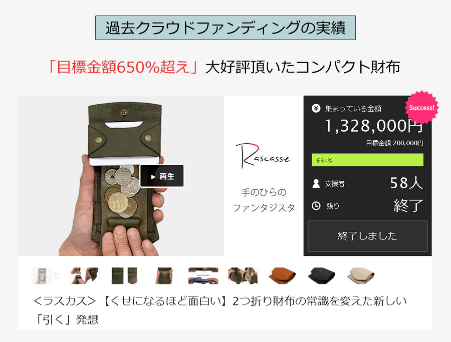 2019/07/01 11:53【超早割り10%OFF】は、各色先着15名様となっております。グリージオ残り11個・コニャック残り15個・ブラック残り15個【発想の転換】設計をする上で初めのコンセプトからだいぶかけ離れて完成すると言う事が良くあります。この財布も初めは、ファスナーやボタンを開けるなどのワンアクションで全てを見渡せて、取り出しと収納を角度や持ち手を変えず操作出来る財布でした。全然引き出すコインケースやフラットになる構造なんかは考えてもいなかったです。あれこれ考えているうちに、単純にココをこうしたらカッコイイんじゃないかなと思ったのがきっかけでどんどん横道にそれ結果この財布が出来上がりました。発想は常により良いモノを求め変化してゆくと僕は思っております。初めのコンセプト通りに最後までブレない事の方が珍しいくらいですね。人それぞれやり方違うと思うのですが、僕はこの方法が結果的に納得ゆく商品を生み出せるのでしっくりきております。最後までお読み頂きありがとうございました。是非ご支援頂ければ幸いでございます。 ラスカス池羽 塁 もっと見る
