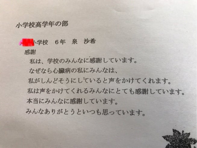 内容は、「心臓病のわたしにいつもやさしくしてくれてありがとう」というものでした。