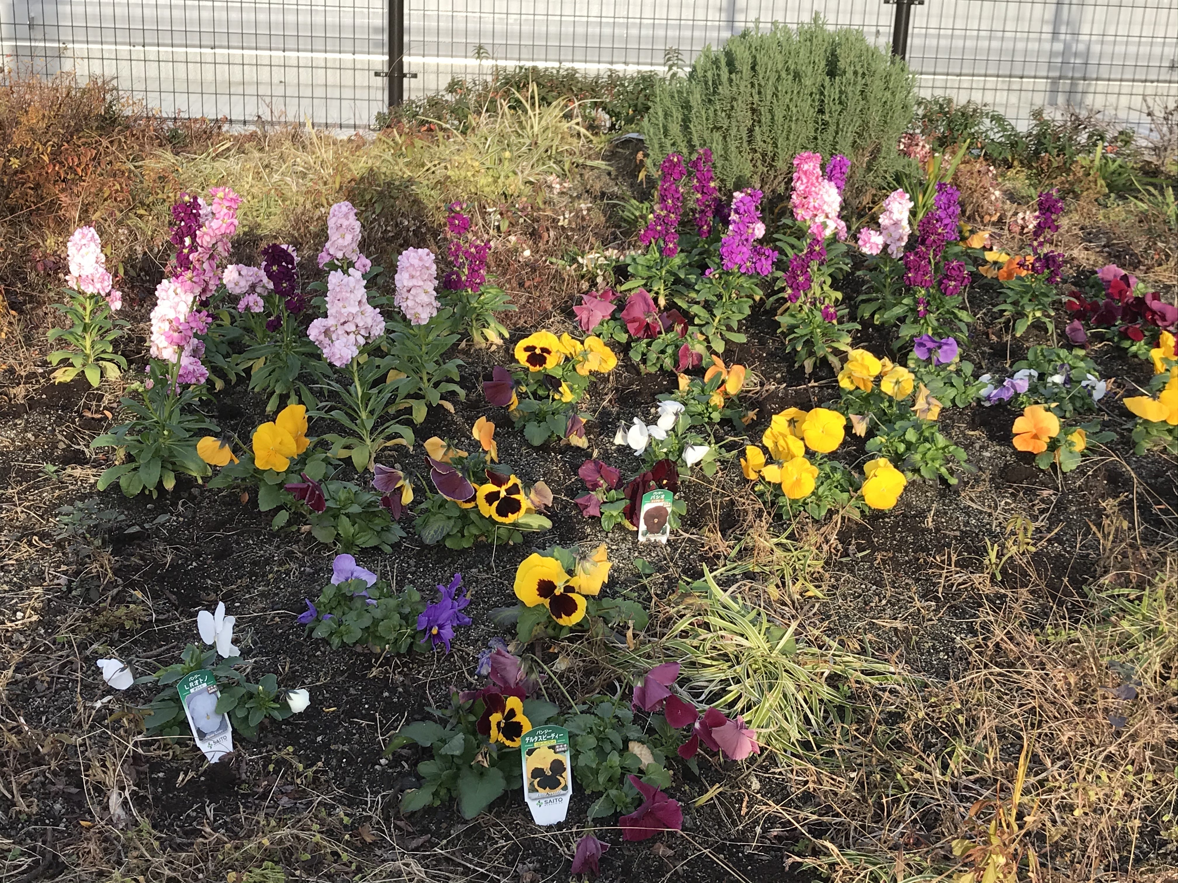 ↑屋上庭園 入院中の子どもが遊べるプレイルーム(後ろに写っているお部屋)からも見られます。