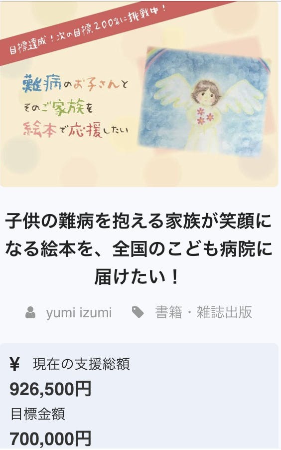 皆さまのおかげで、絵本出版費用の約半分の費用の金額は達成しました!