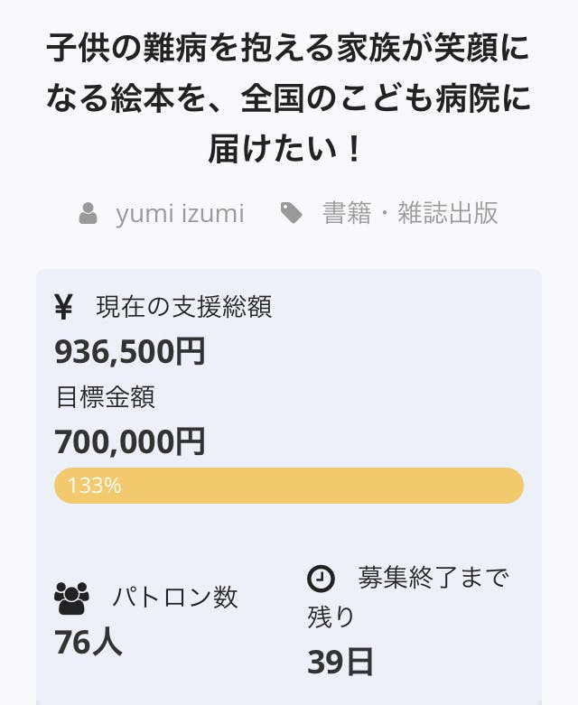 【子供の難病を抱える家族が笑顔になる絵本を、全国のこども病院に届けたい!進捗状況③】
